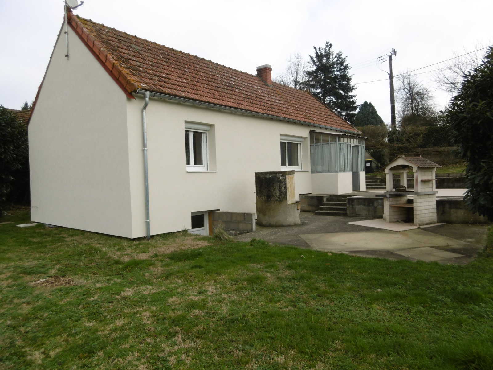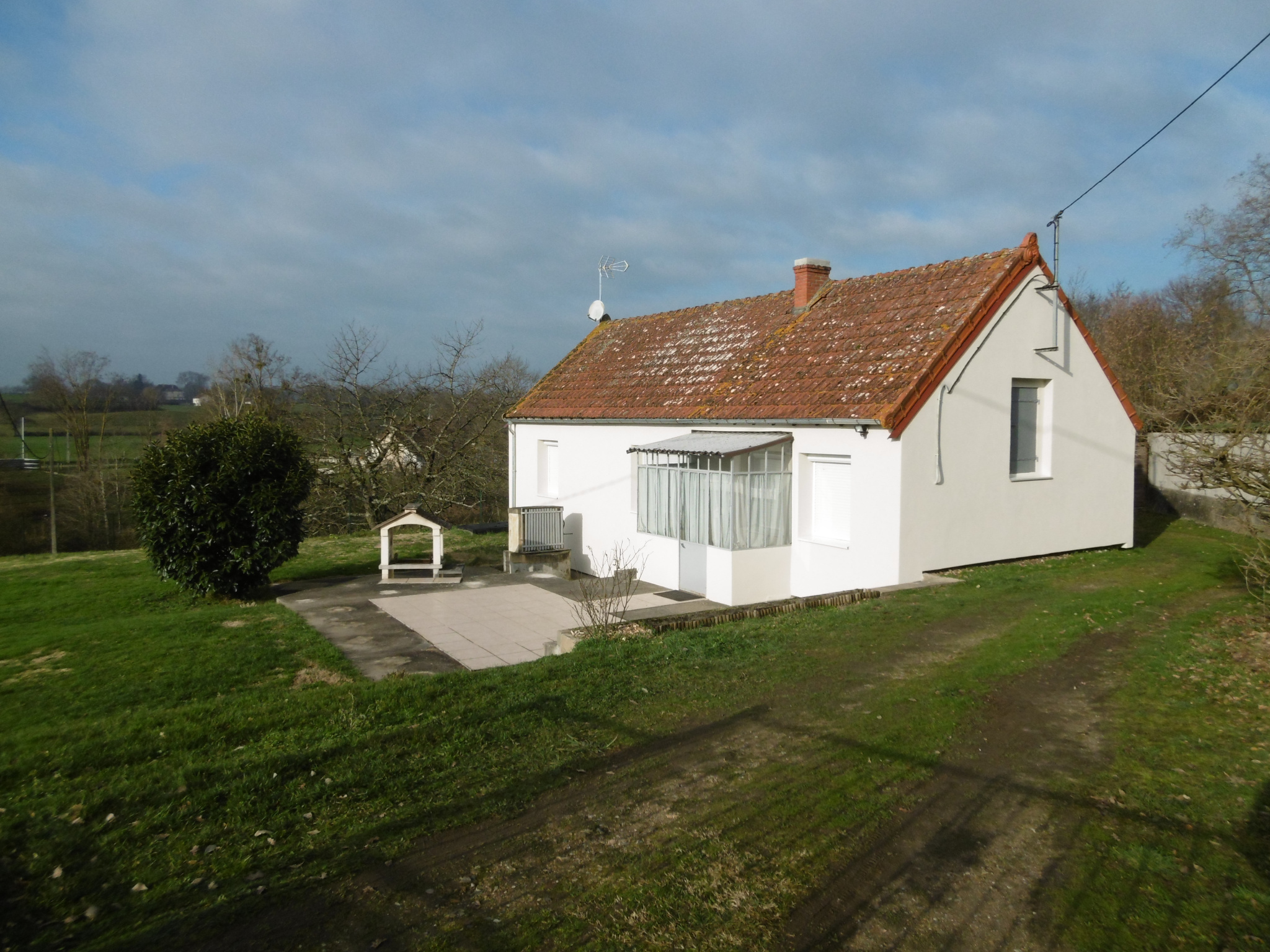 L'agence M2G vous présente à la location cette maisonnette d'une superficie habitable de 52.02 m² située au calme avec une vue dégagée tout en étant proche du Bourg, comprenant: Une véranda, une cuisine meublée, un séjour avec une baie vitrée donnant sur le jardin, une chambre, une salle d'eau/toilettes. Un garage - une dépendance - une cave Un jardin et une terrasse le tout clos et arboré. Chauffage électrique récent.