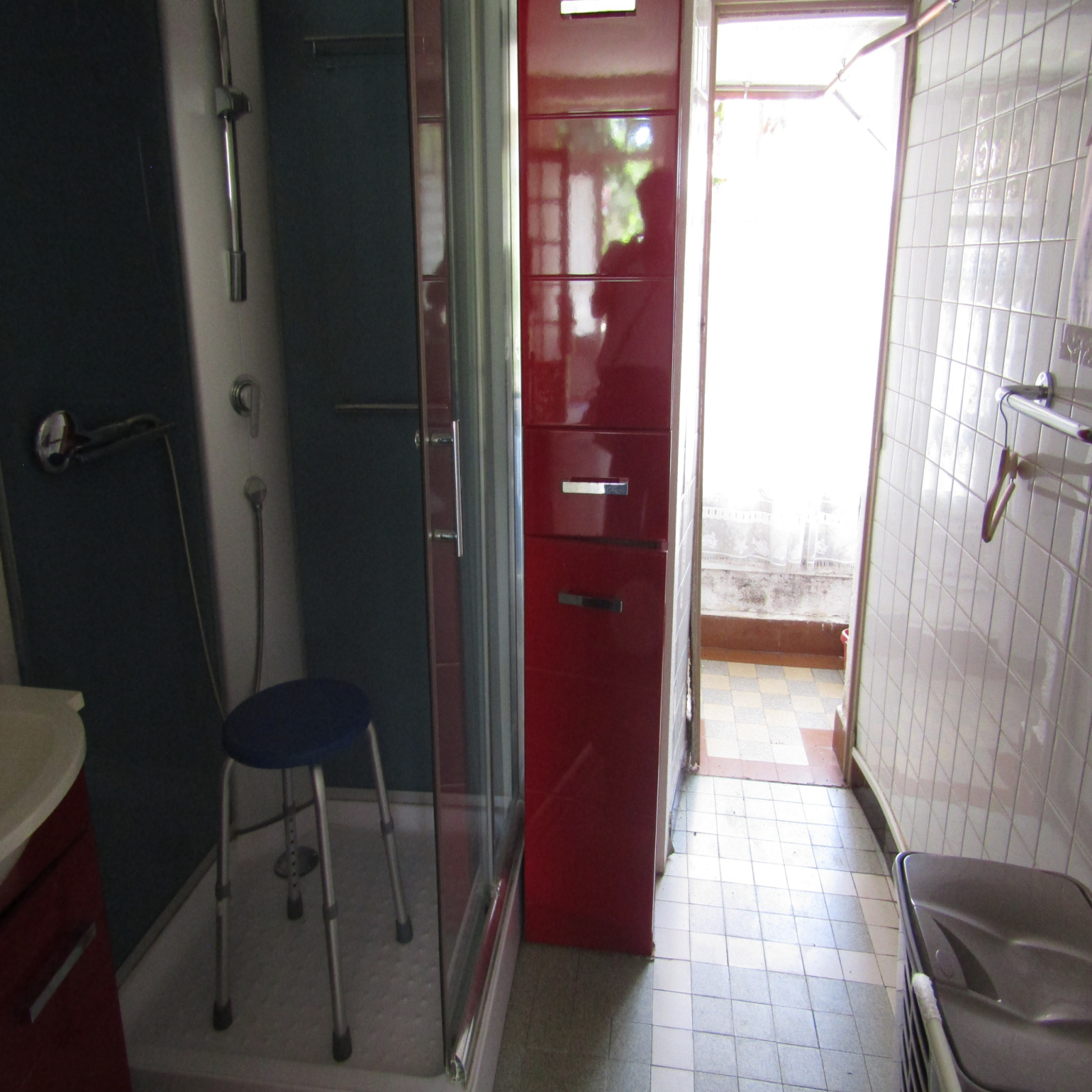 Un grand balcon sur l’avant donnant sur cuisine, salle de séjour et chambre.