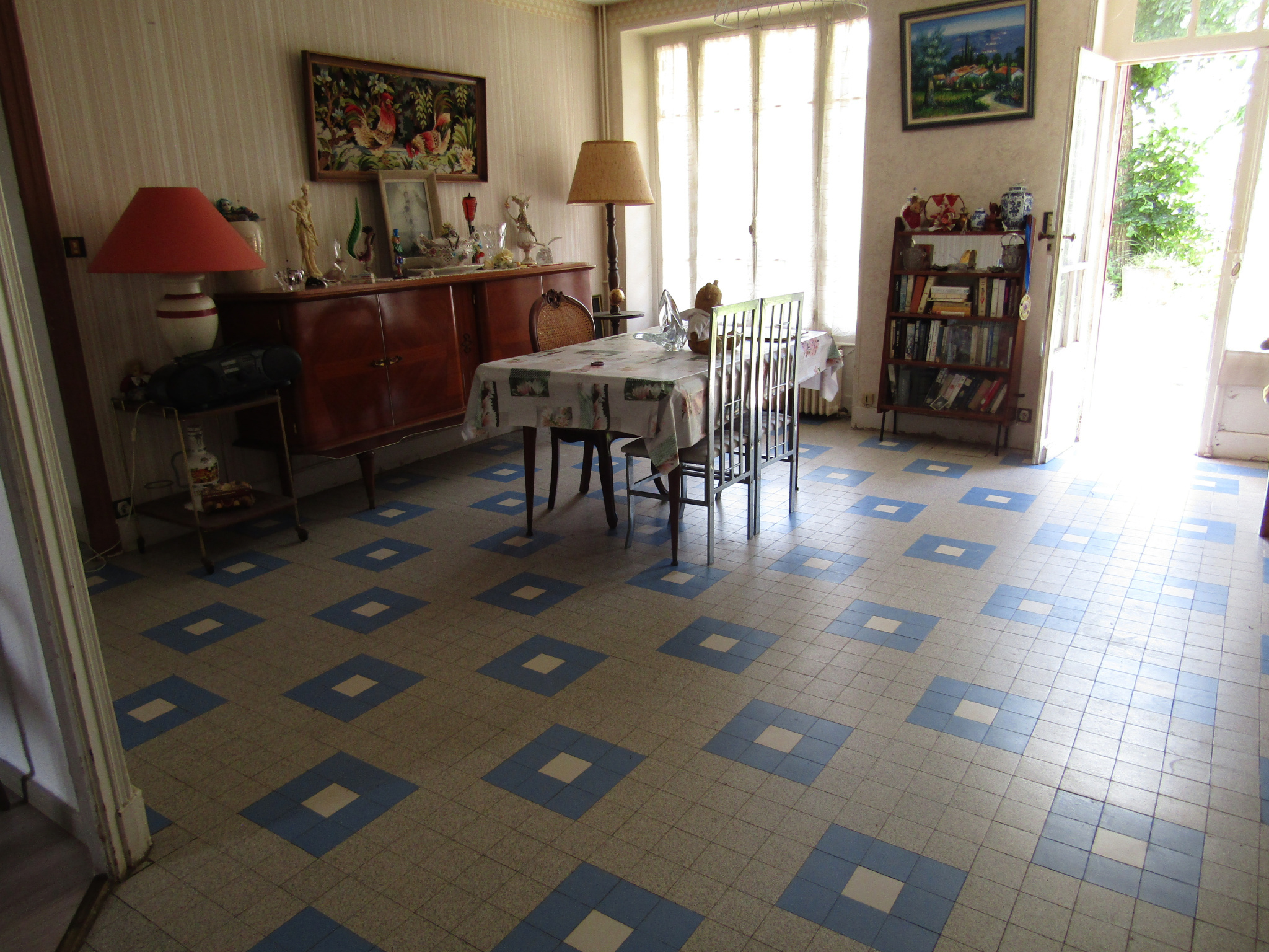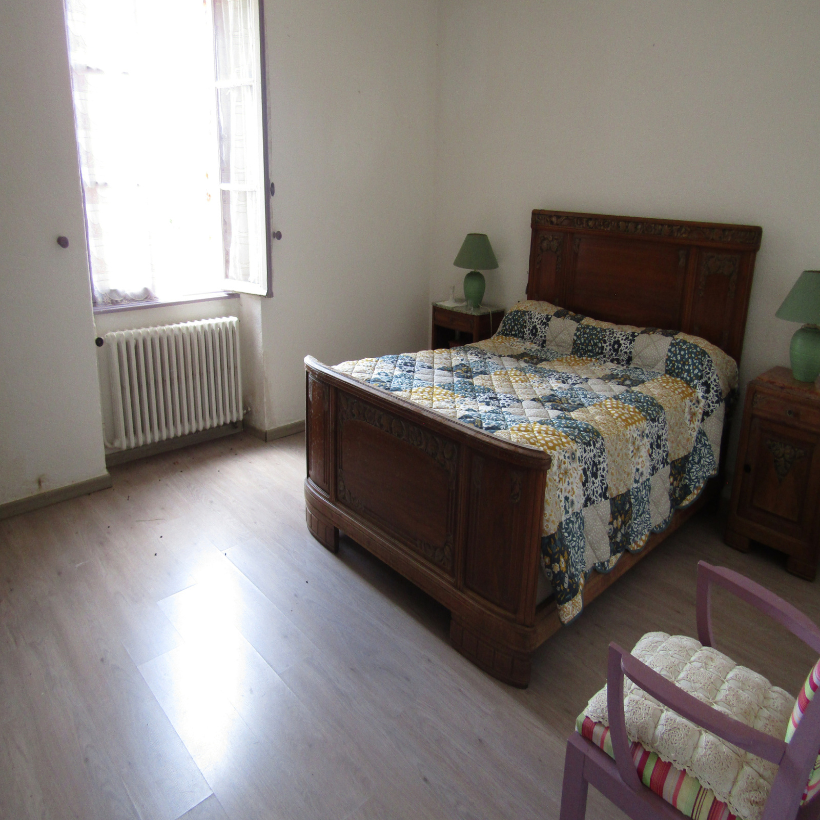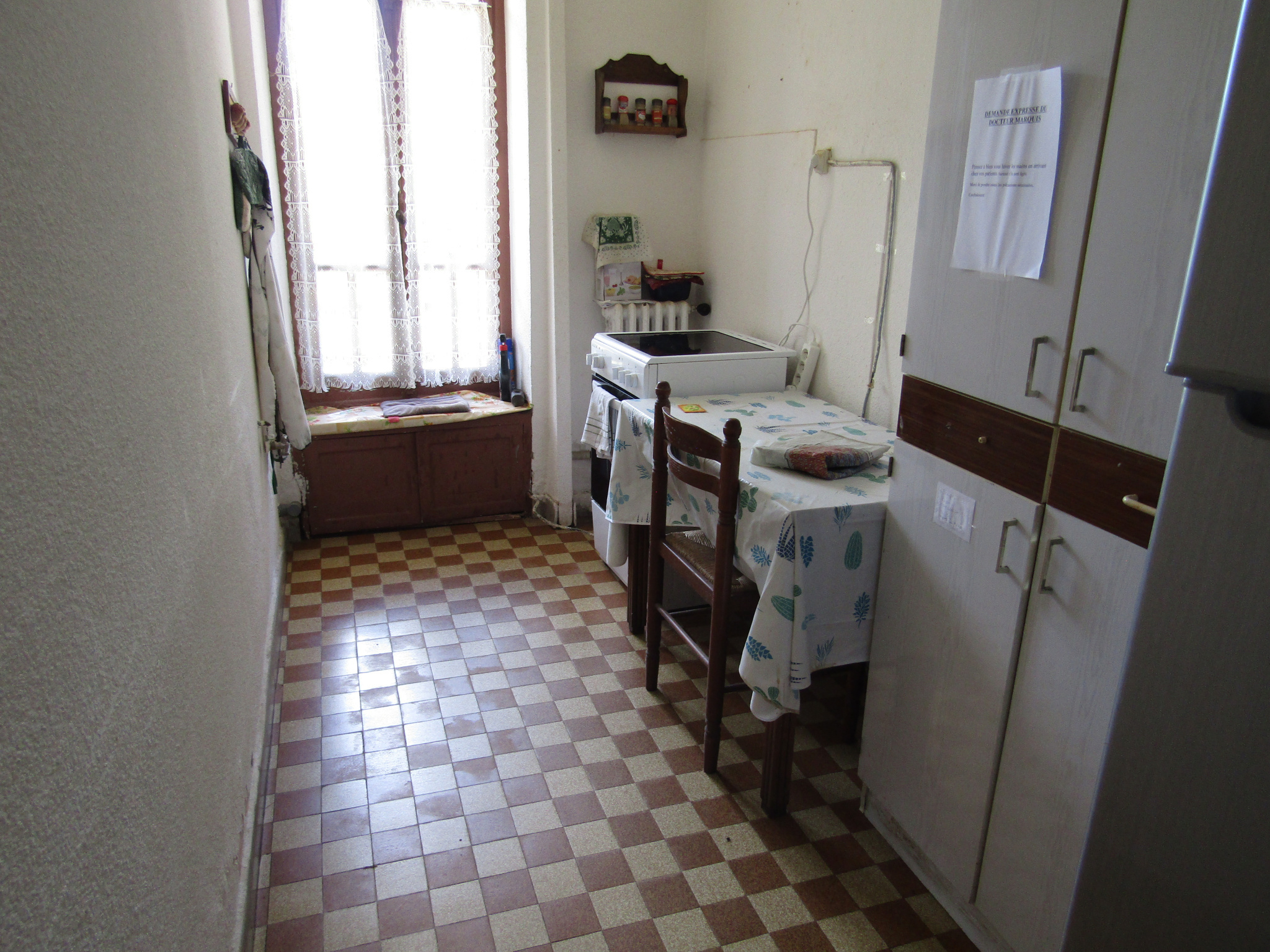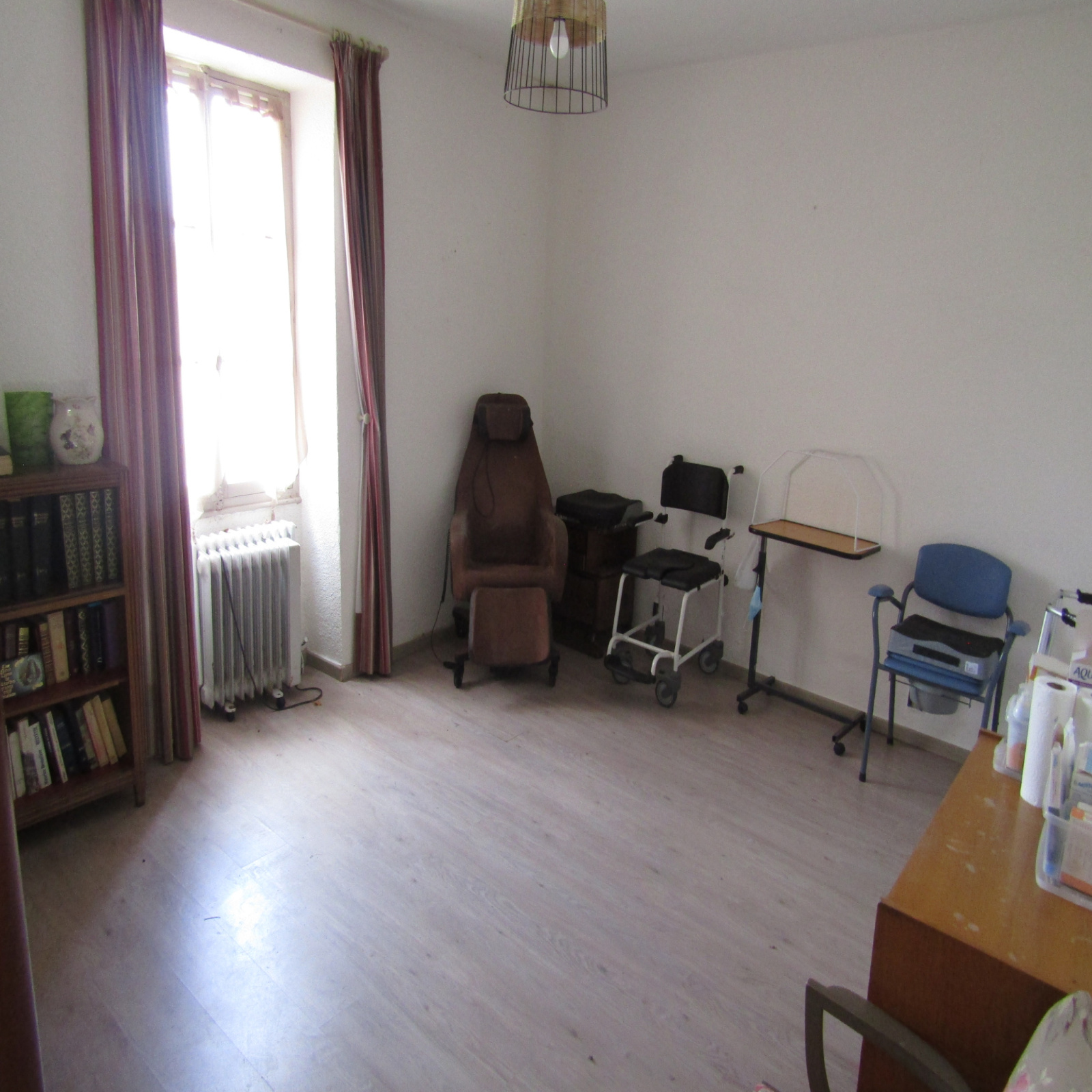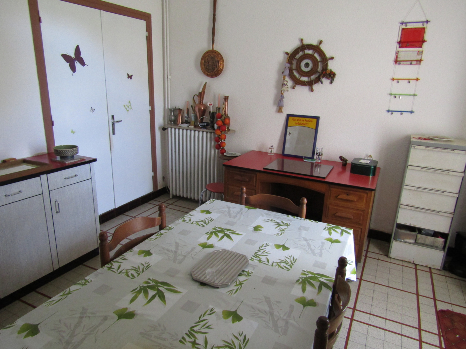 Au rez de chaussée une cuisine, une salle à manger, deux chambres, une salle d’eau, des toilettes, deux pièces et un bureau.