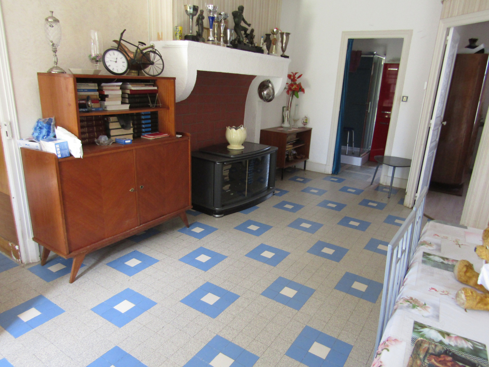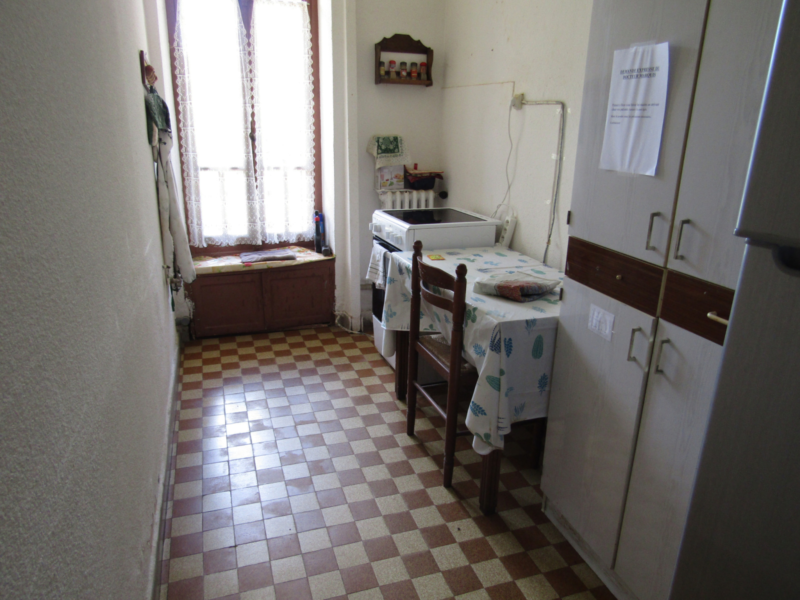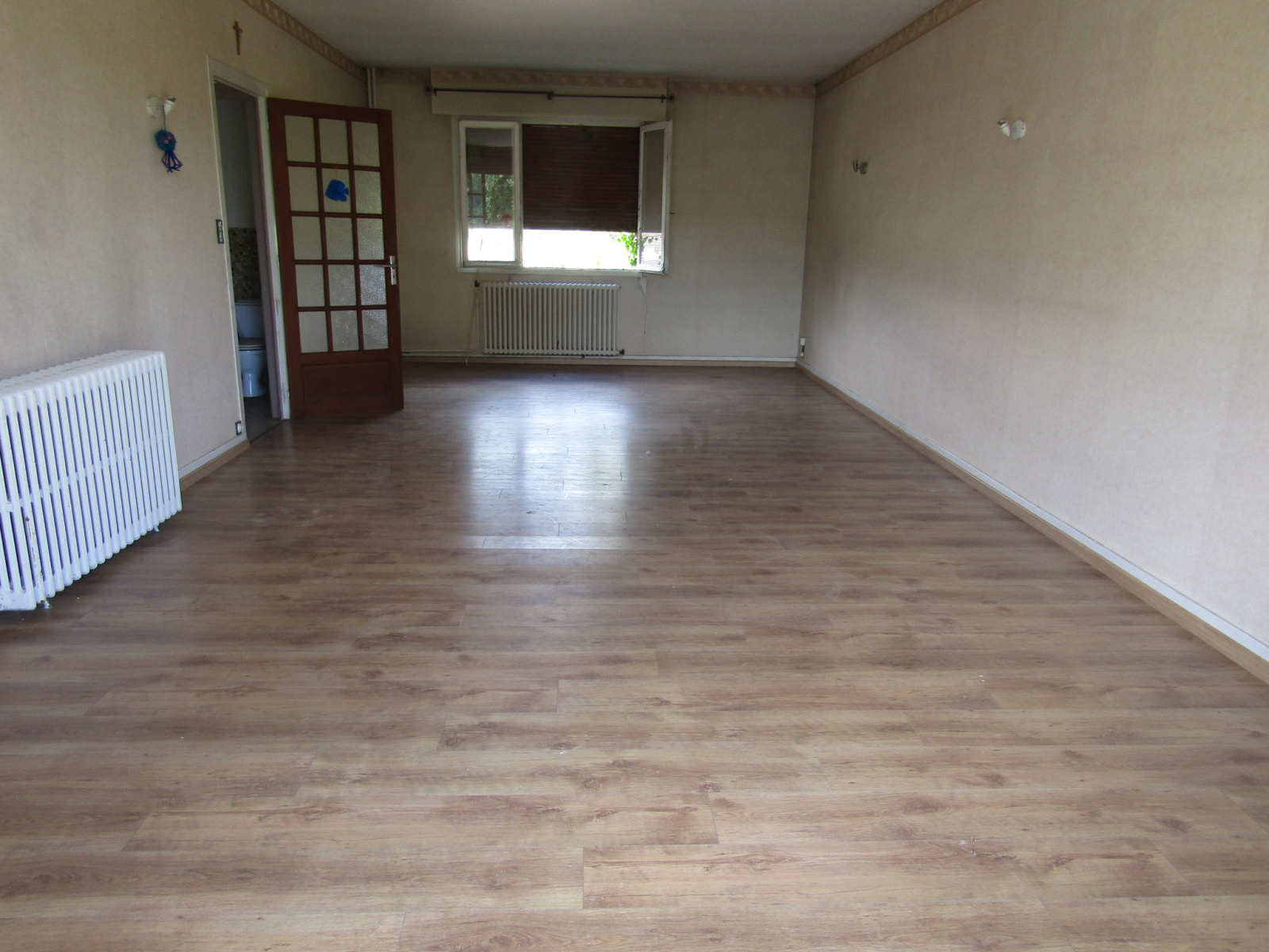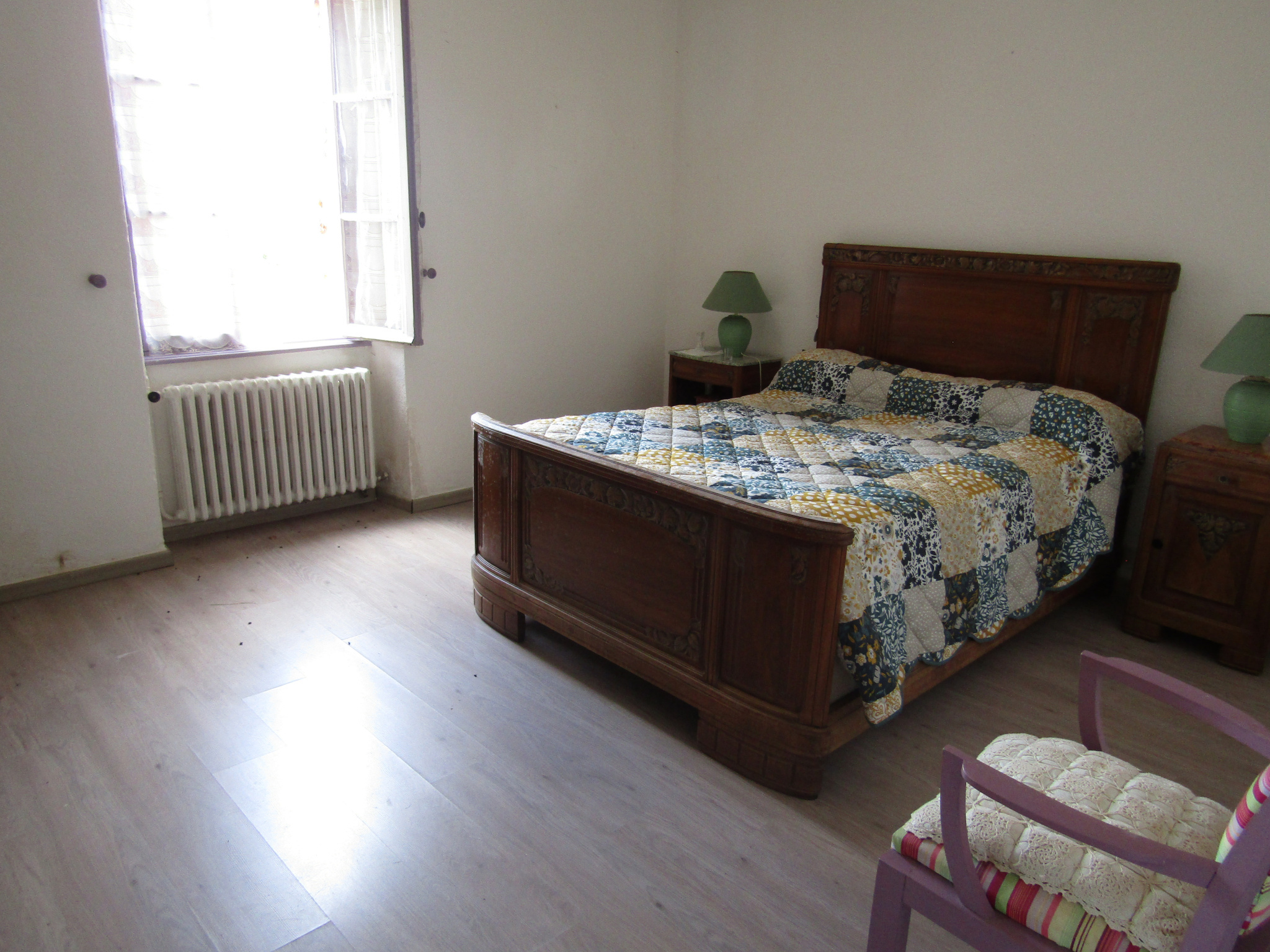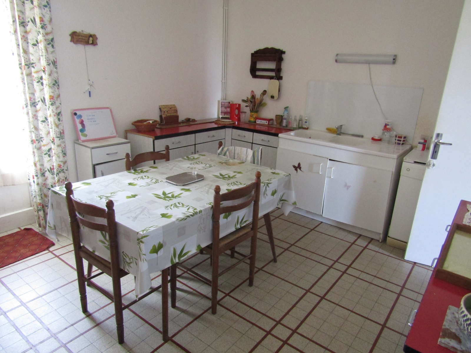 A l’étage un couloir de dégagement donnant sur une salle à manger/salon, une cuisine, quatre chambres dont une avec lavabo, une salle de bains, des toilettes.