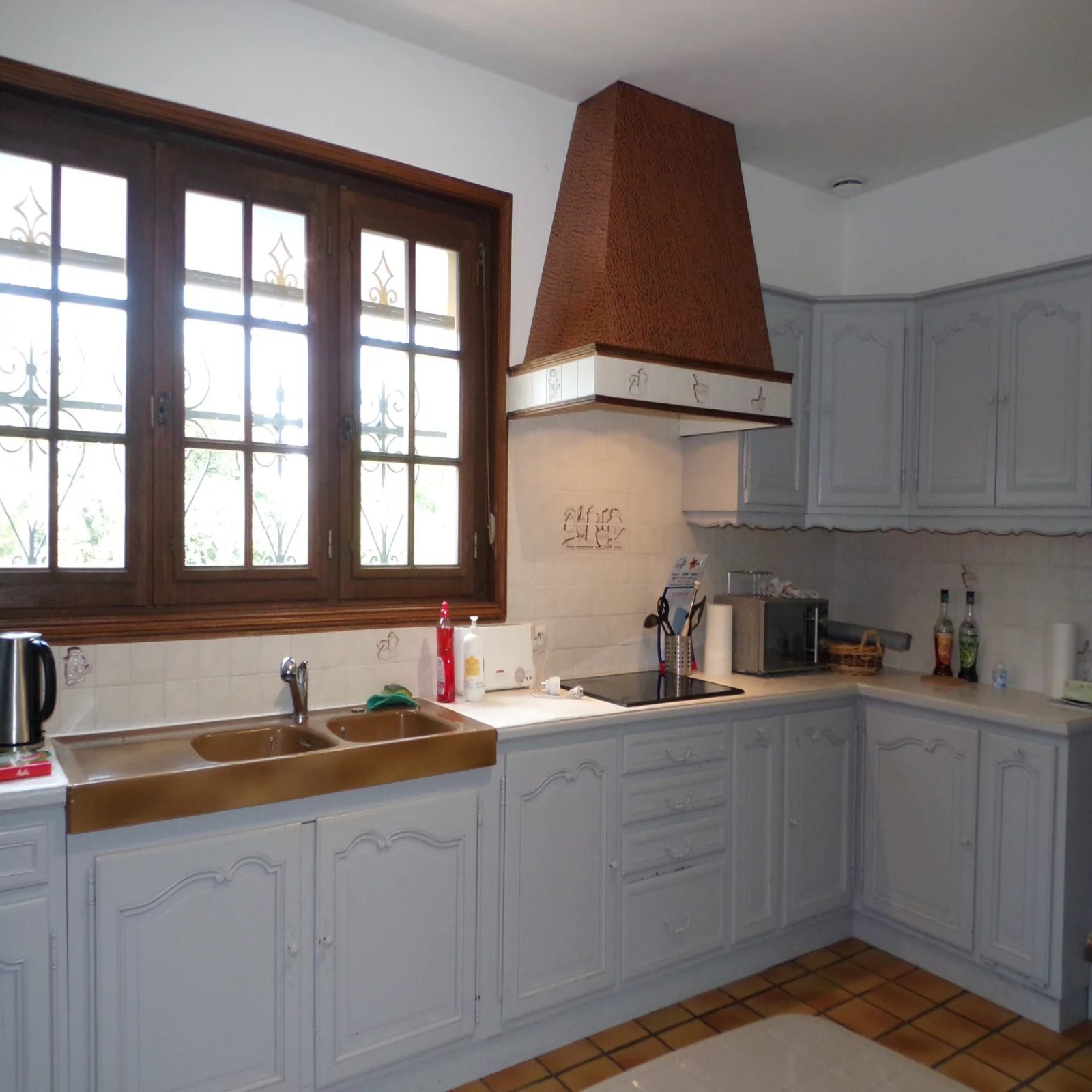 Elle offre un vaste hall d'entrée - une cuisine équipée - un salon - une salle à manger avec cheminée et plafond à la française,un salon/chambre avec accès direct à la salle de bains - deux toilettes - une lingerie