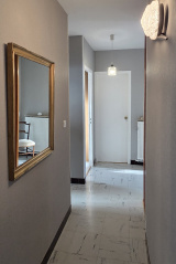 Un dégagement avec placard mène à 2 chambres dont 1 avec accès balcon, salle de bains et wc séparés.