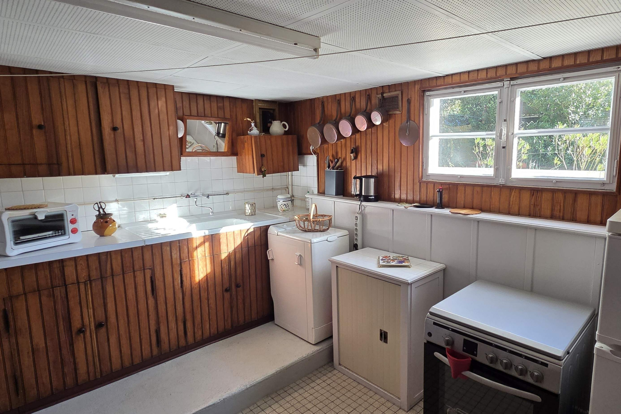 Au sous-sol semi-aménagé : hall d'accès, cuisine d'été-buanderie-chaufferie (chaudière gaz de ville récente), atelier, garage et cave.