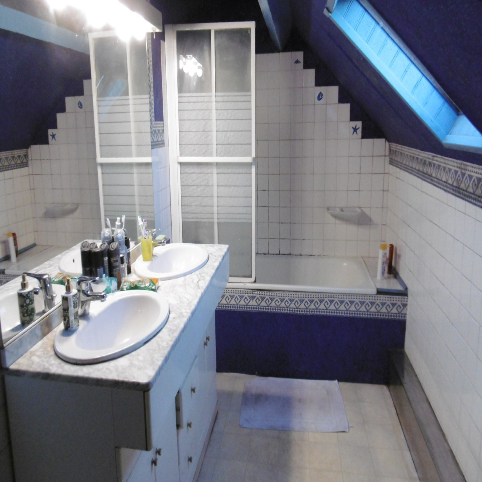 L’habitation se répartit sur 170m² env. avec au rez-de-chaussée : hall d’entrée traversant et central, salle à manger avec cheminée de marbre, cuisine équipée, salon avec cheminée de marbre, chambre et salle d’eau avec wc. Un bel escalier en chêne mène à l’étage offrant un large palier, 3 chambres avec dressing dont 1 avec salle de bains privative, et wc séparés. Cave sous partie pour moitié de la maison.