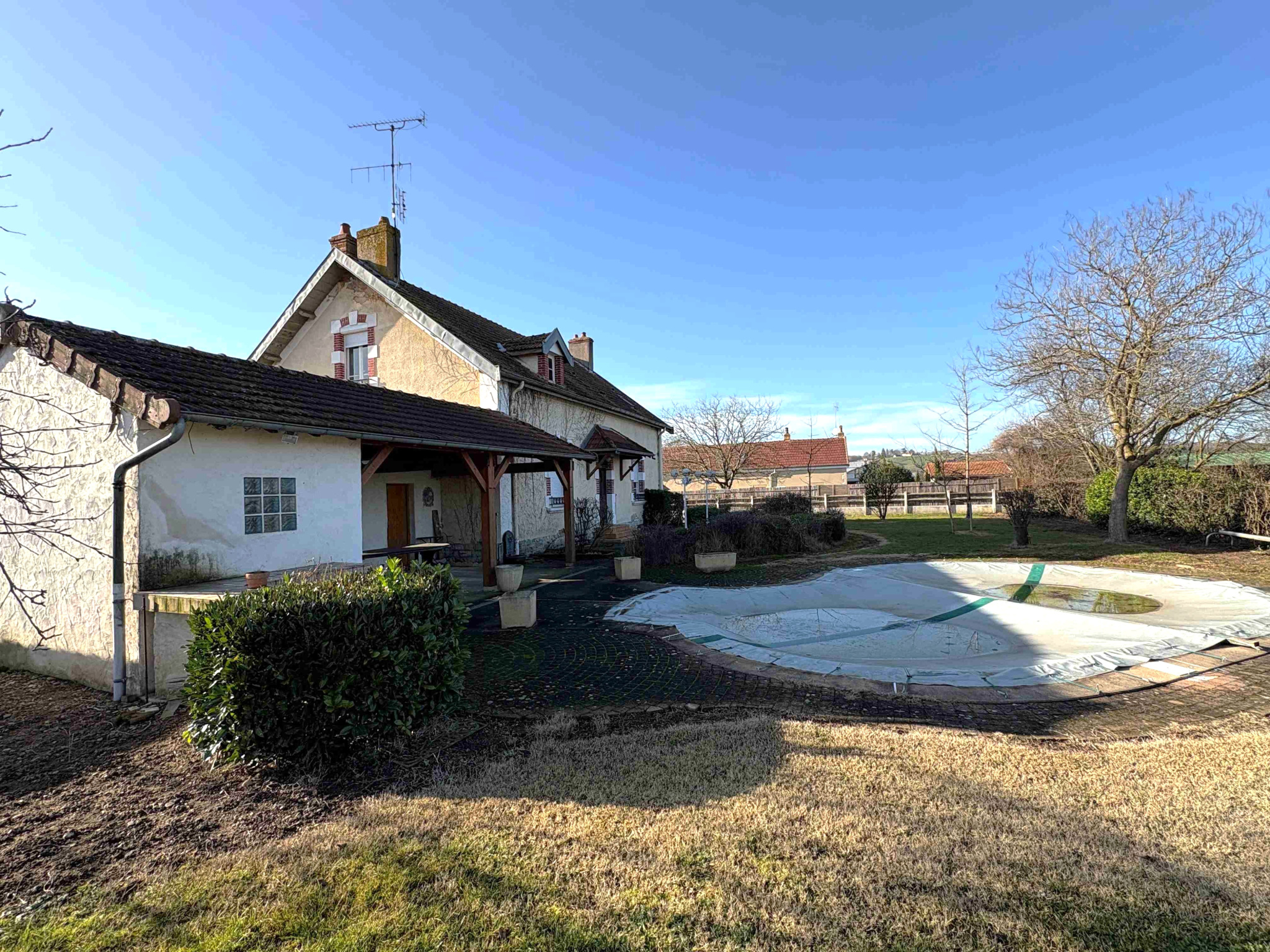 Le terrain autour de la maison comprend une cour, un jardin arboré et un espace détente avec piscine enterrée et terrasse couverte.