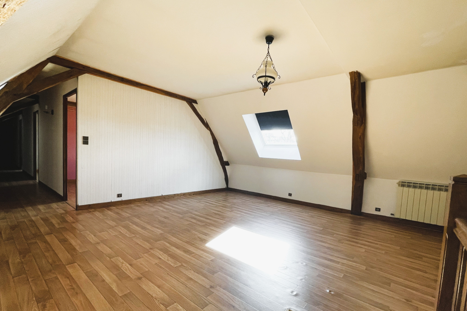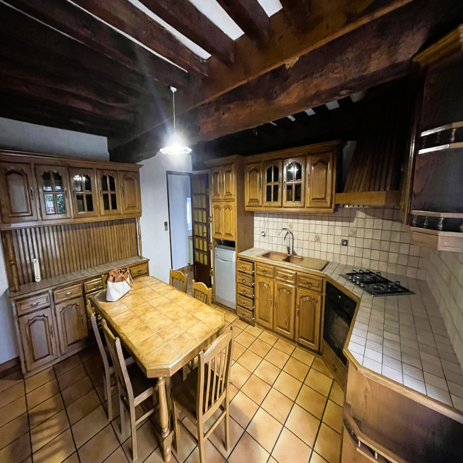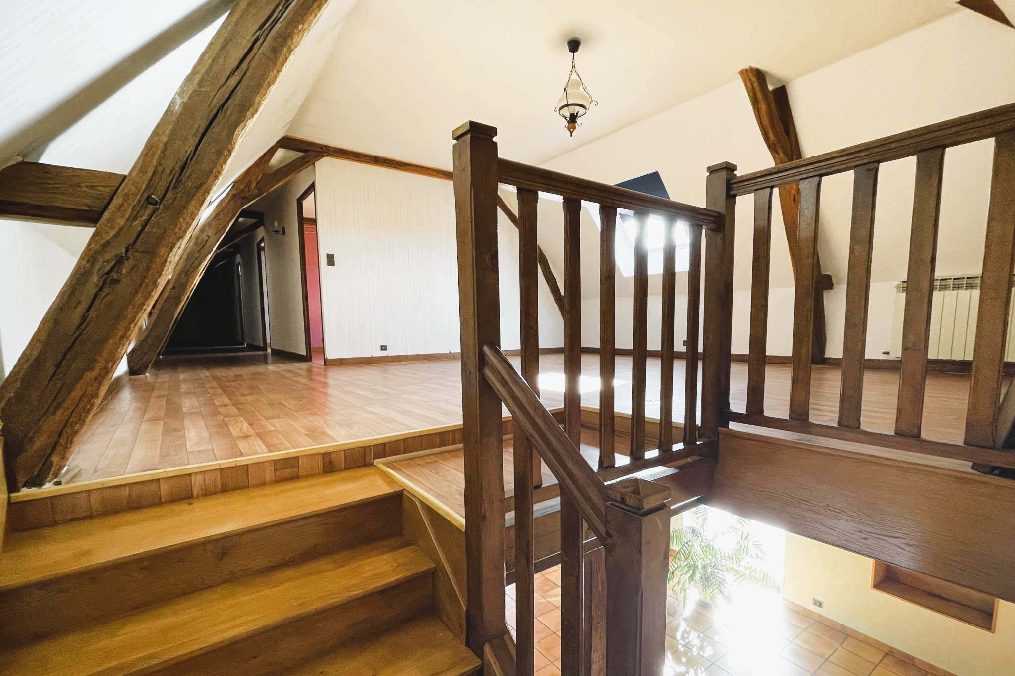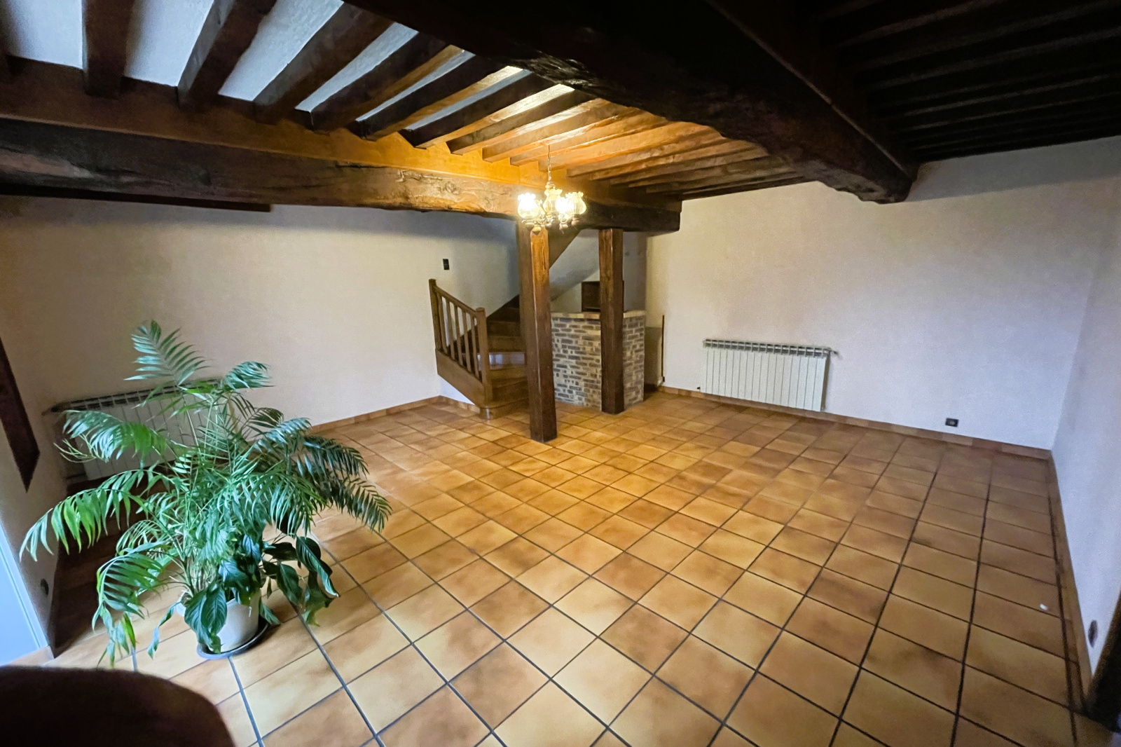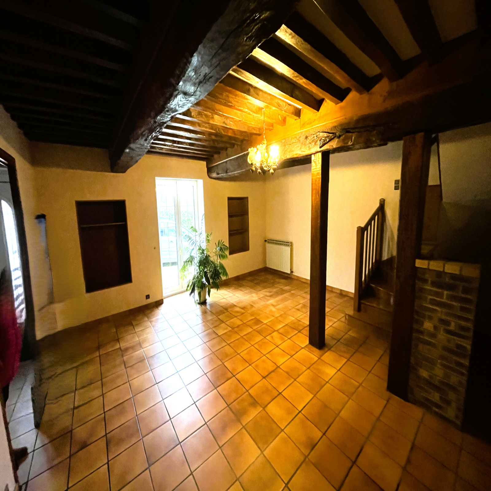 Cette belle demeure au cachet indéniable séduit par ses poutres apparentes, apportant chaleur et authenticité à l’ensemble.