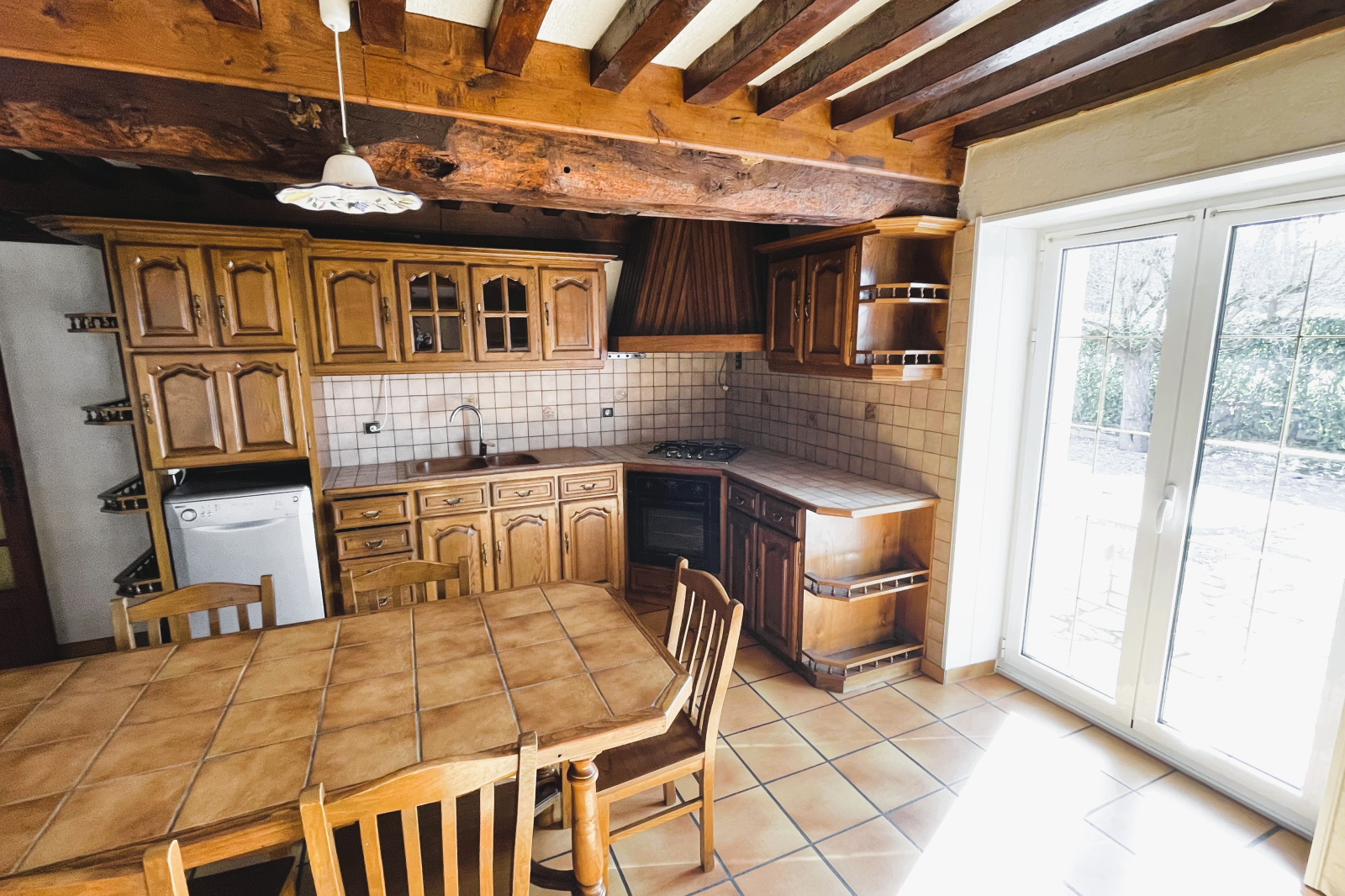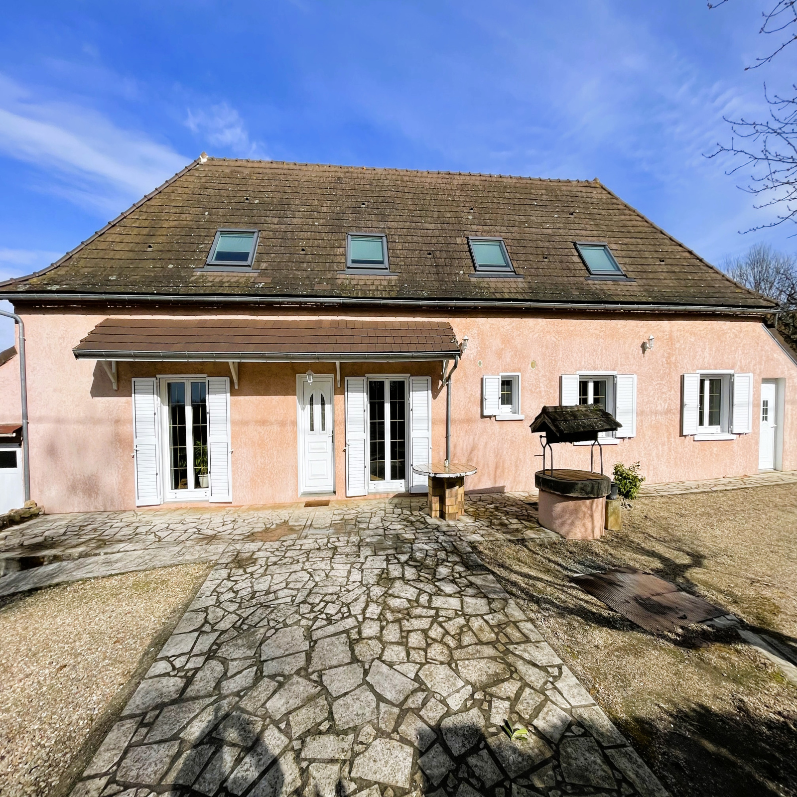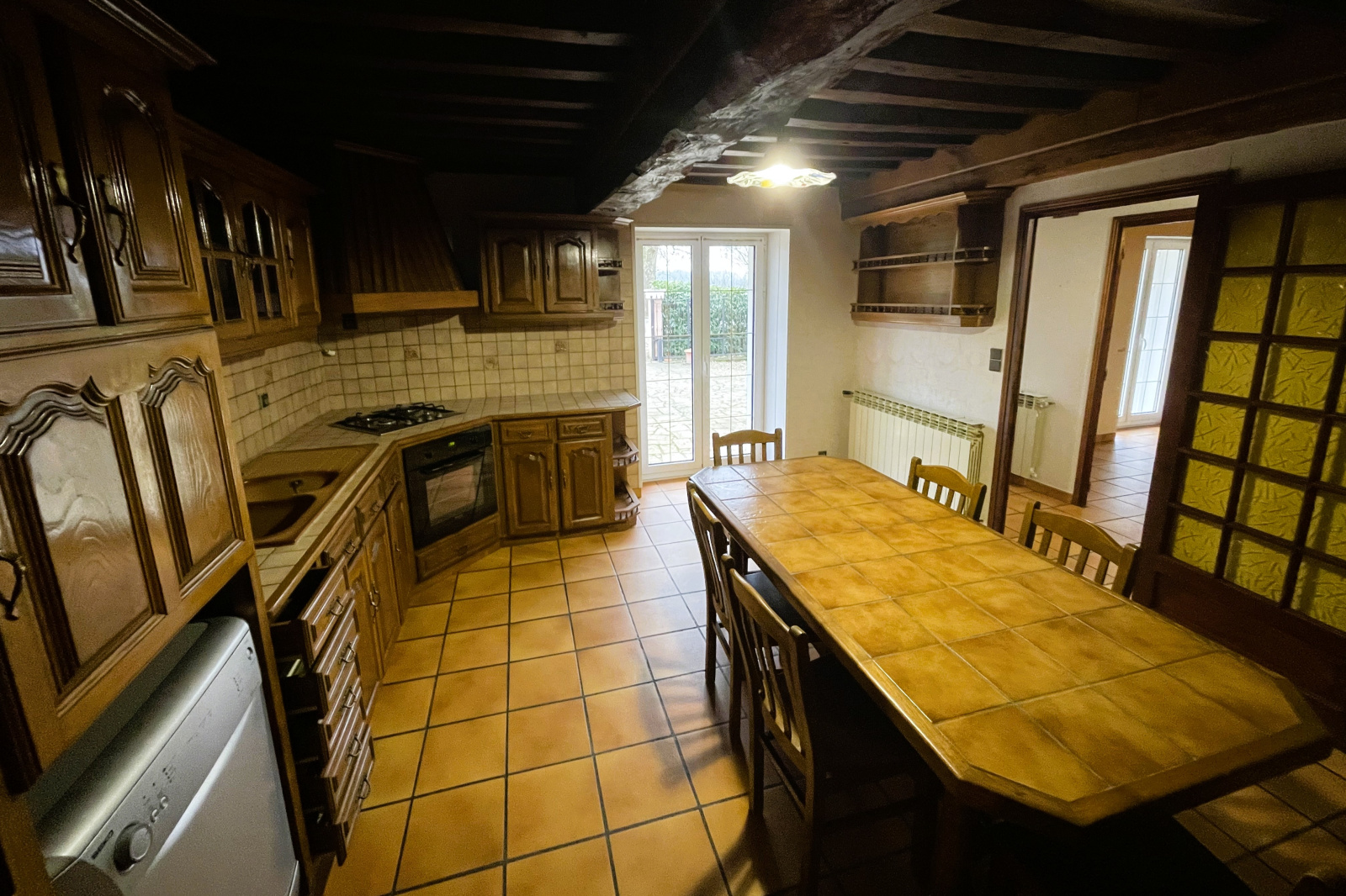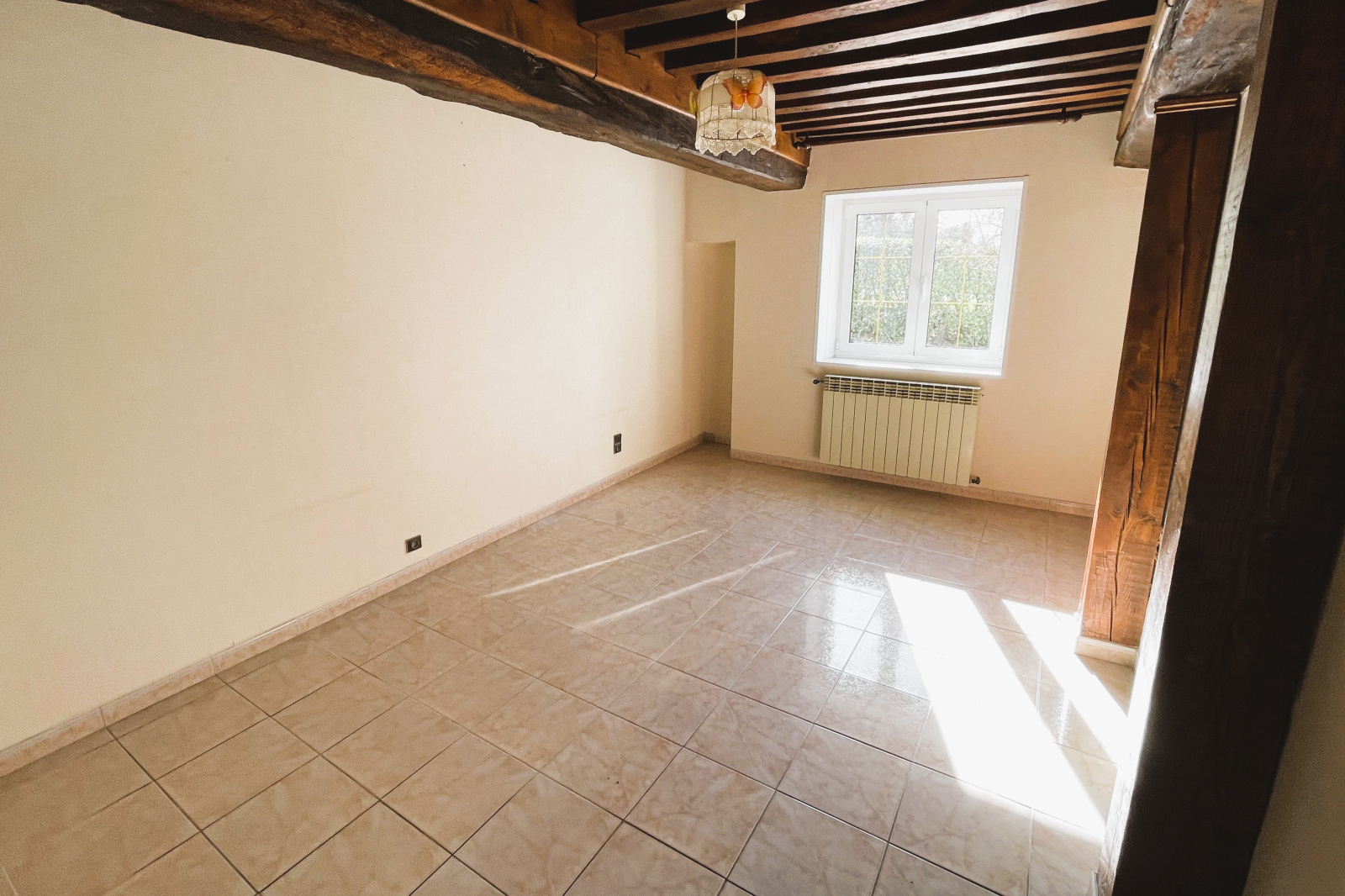 Cette belle demeure au cachet indéniable séduit par ses poutres apparentes, apportant chaleur et authenticité à l’ensemble.