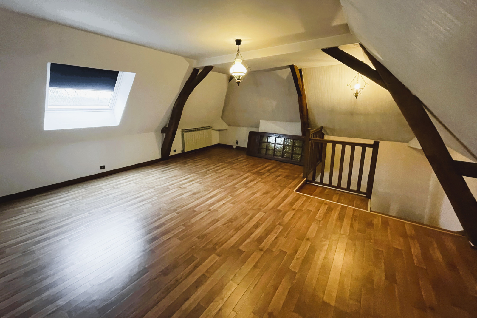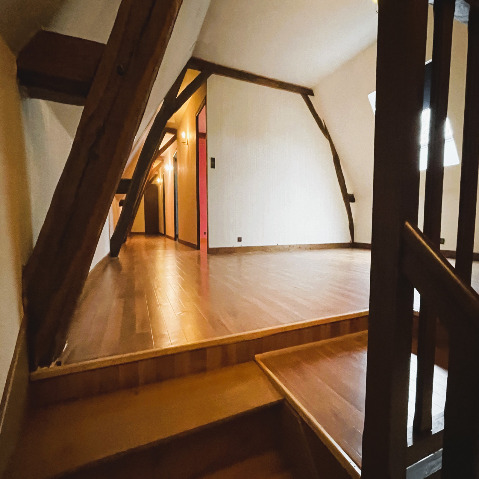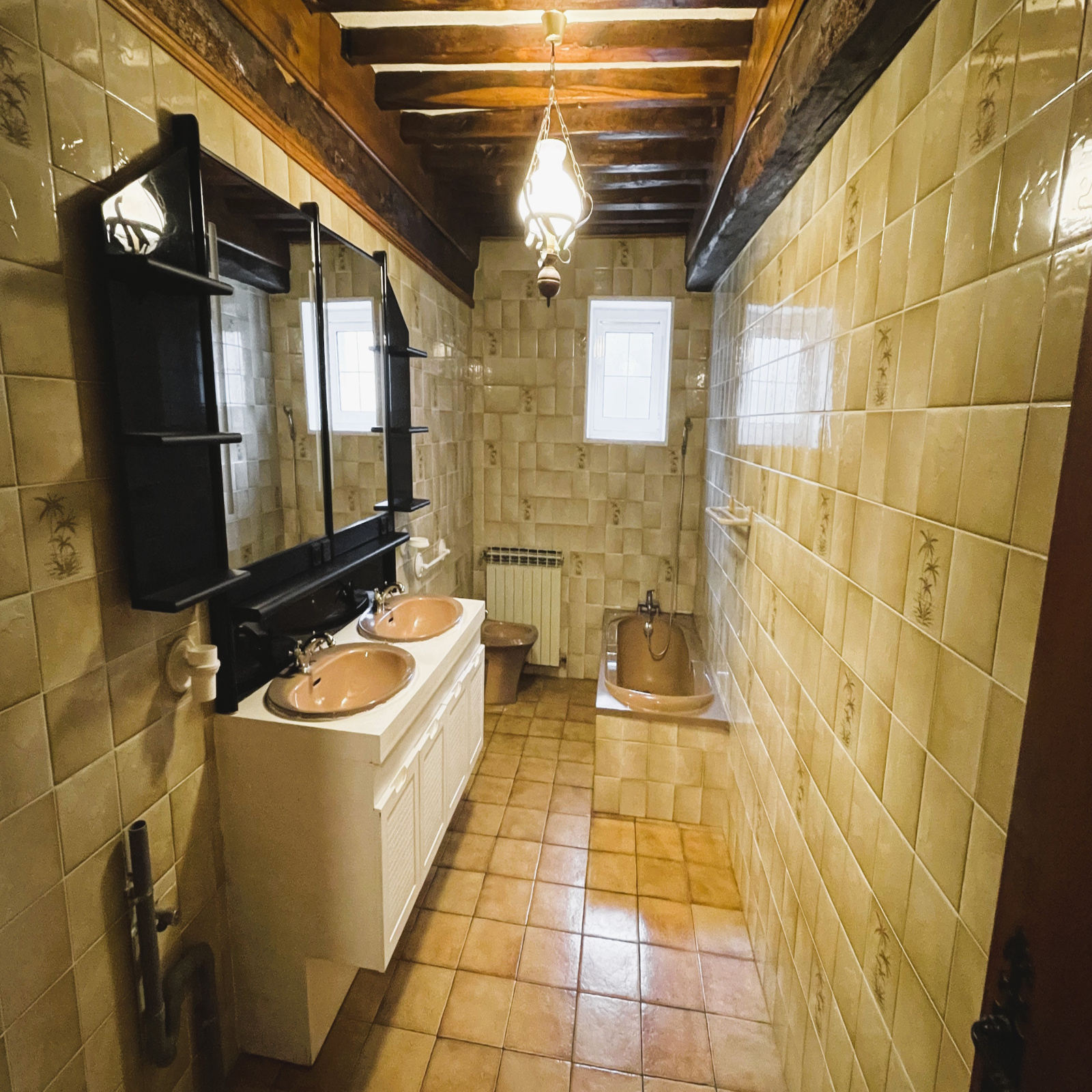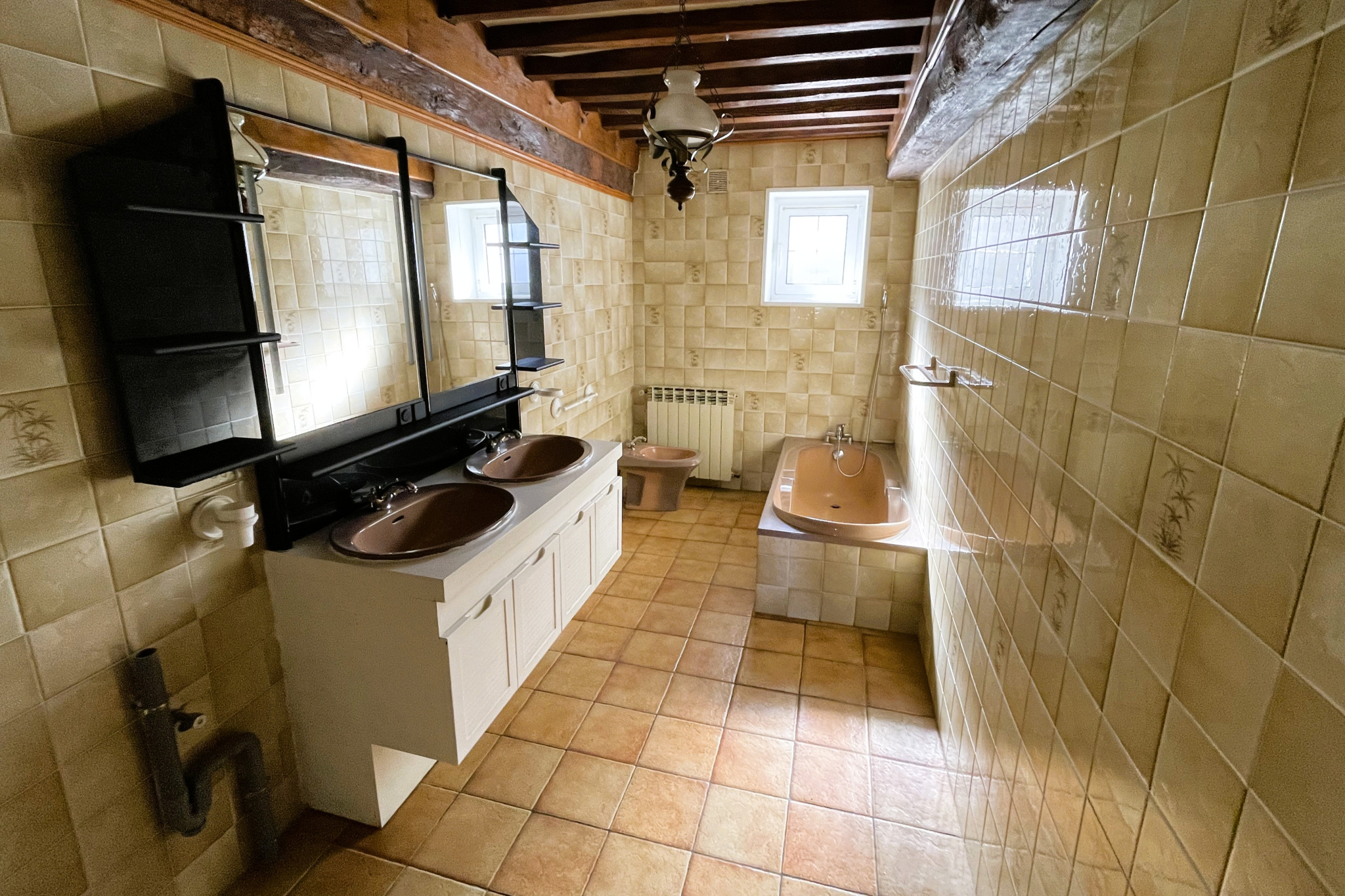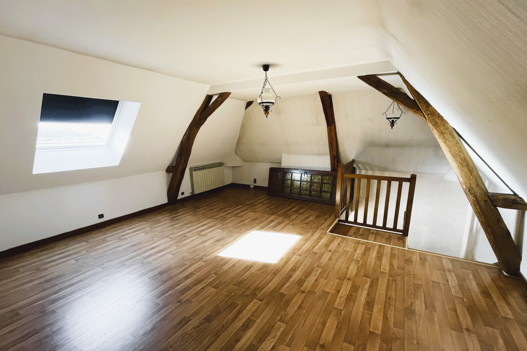 Cette belle demeure au cachet indéniable séduit par ses poutres apparentes, apportant chaleur et authenticité à l’ensemble.