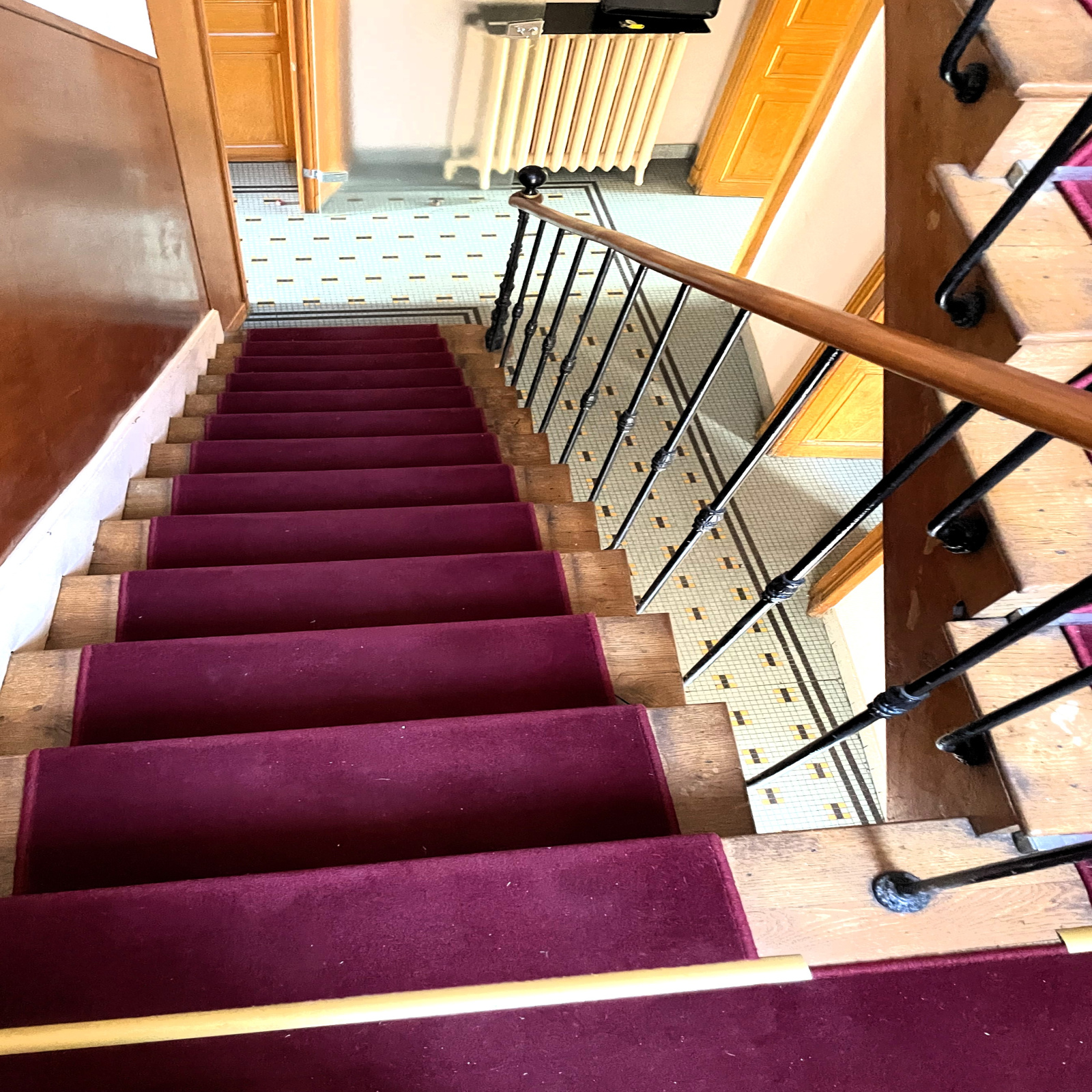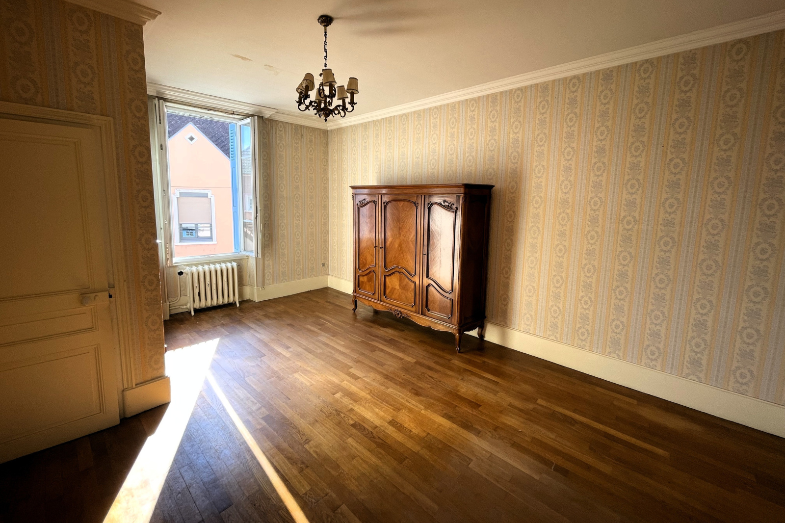 Édifiée en 1870, cette demeure bourgeoise de 210 m² a conservé tout le charme de l’ancien : carreaux de ciment, moulures, boiseries, cheminée, et majestueux escalier en bois.