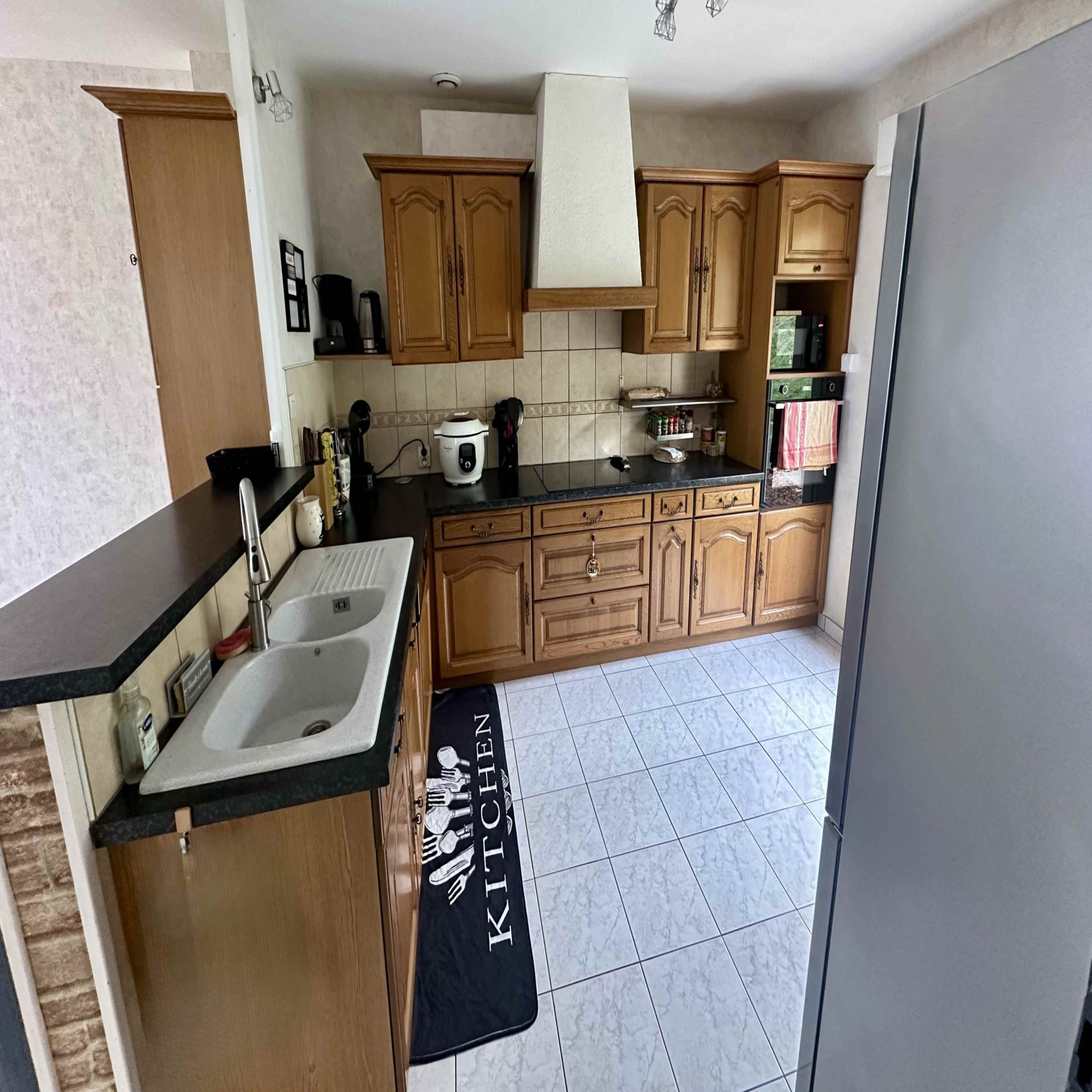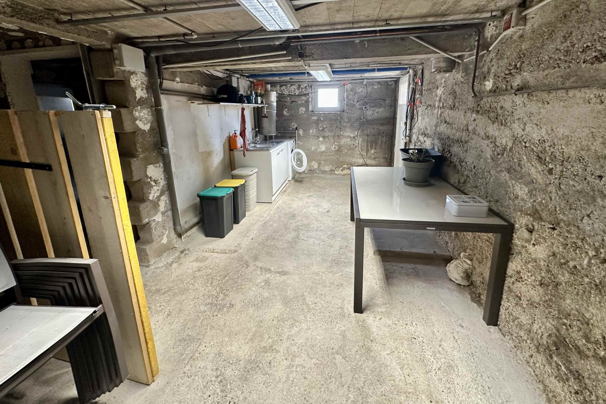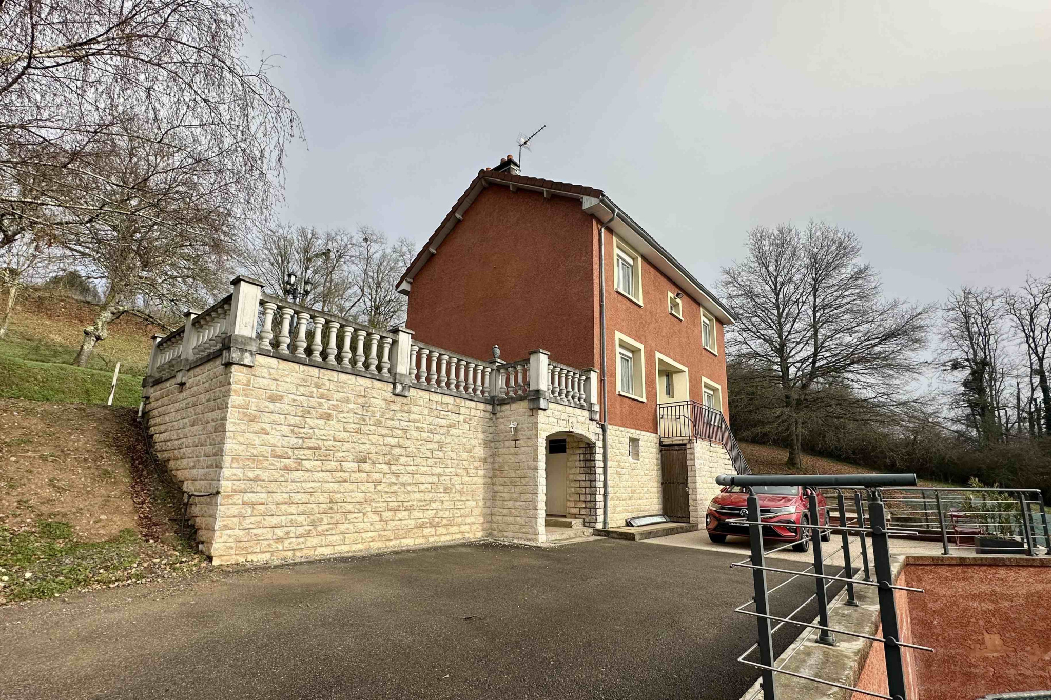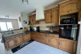 Accessible par un portail électrique sécurisé et une allée entièrement goudronnée, cette maison construite sur sous-sol, élevée d'un rez-de-chaussée et d'un étage, comprend : entrée ouverte sur séjour/salon, salle à manger ouverte sur cuisine équipée avec accès sur la terrasse arrière et wc. A l'étage : un grand palier distribue 4 chambres, une salle de bains et wc. Le sous-sol comprend buanderie, pièce de rangement, atelier et cave.
