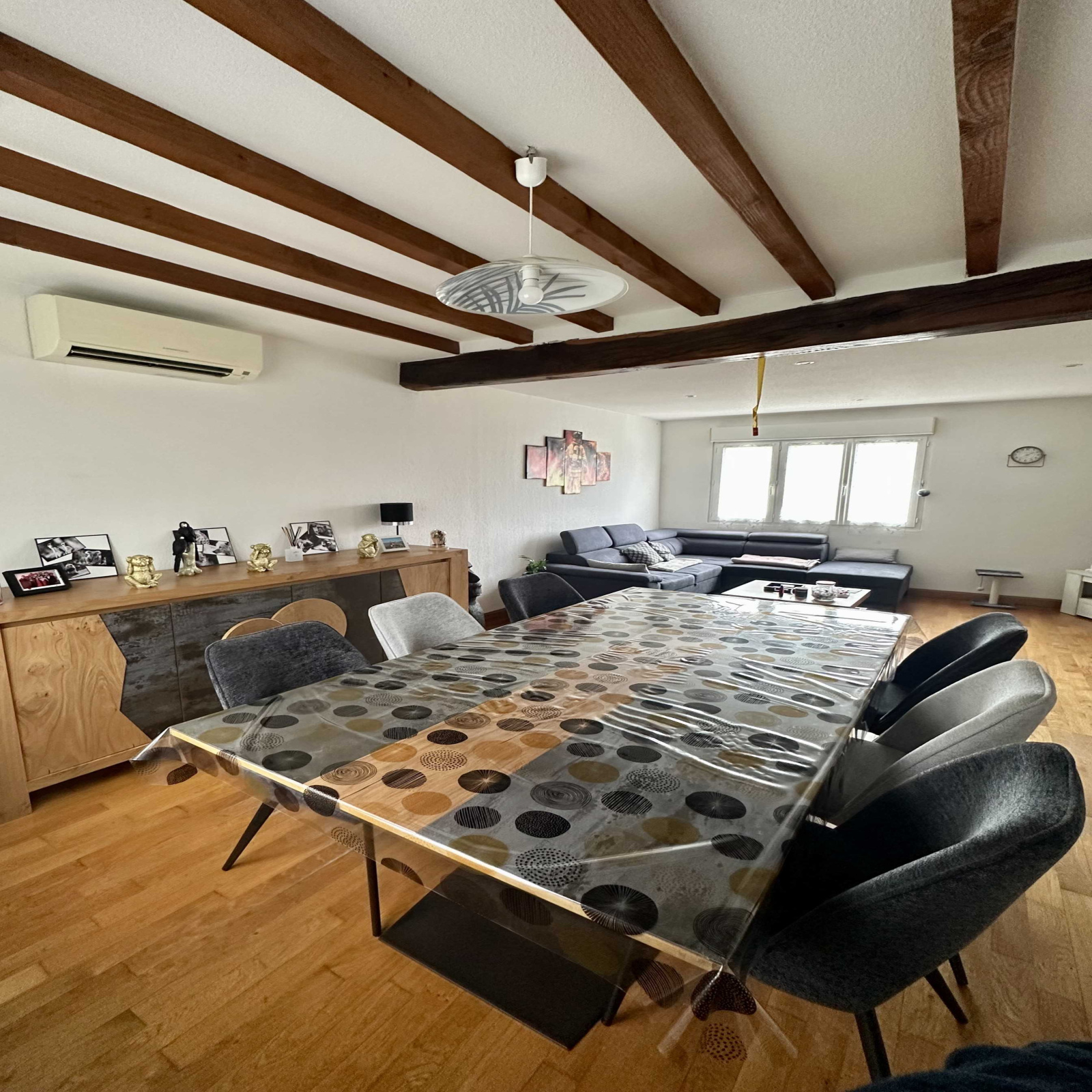 De nombreuse équipements apportent tout le confort moderne à la maison : chauffage par pompe à chaleur air/air avec climatisation réversible dans chaque pièce, huisseries double vitrage PVC, volets roulants électriques, isolation des combles, aspiration centralisée, portail motorisé avec visiophone, raccordement à la fibre…..