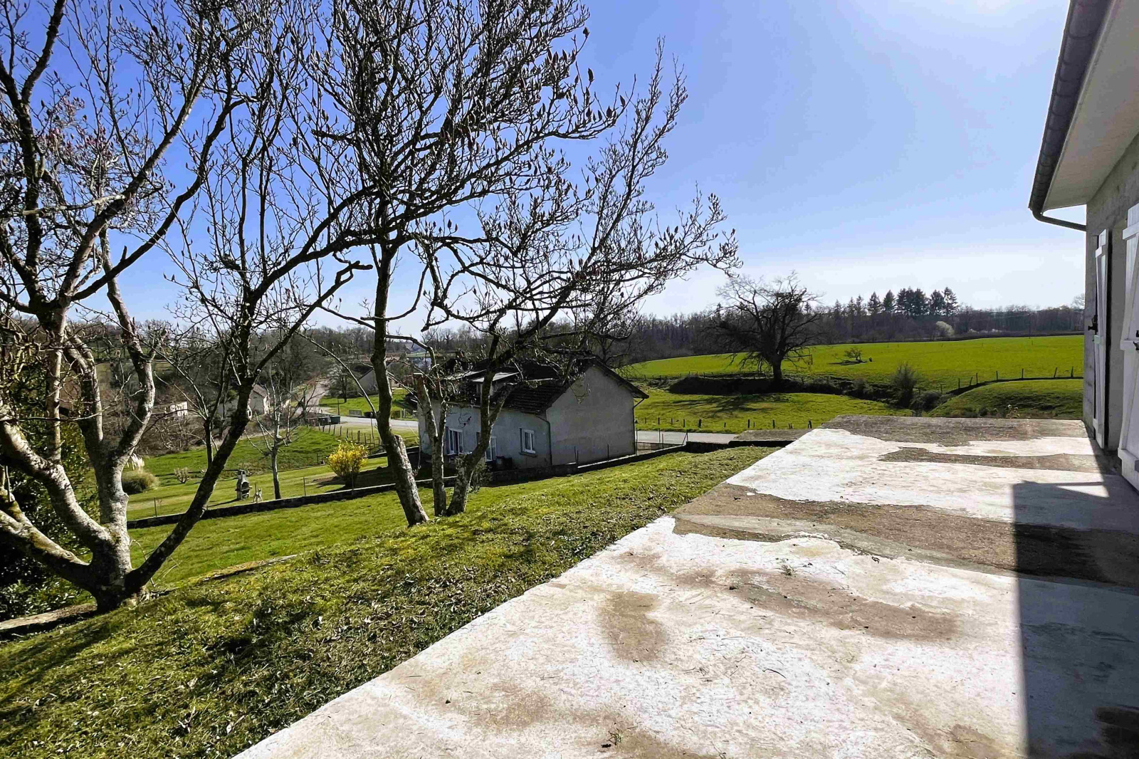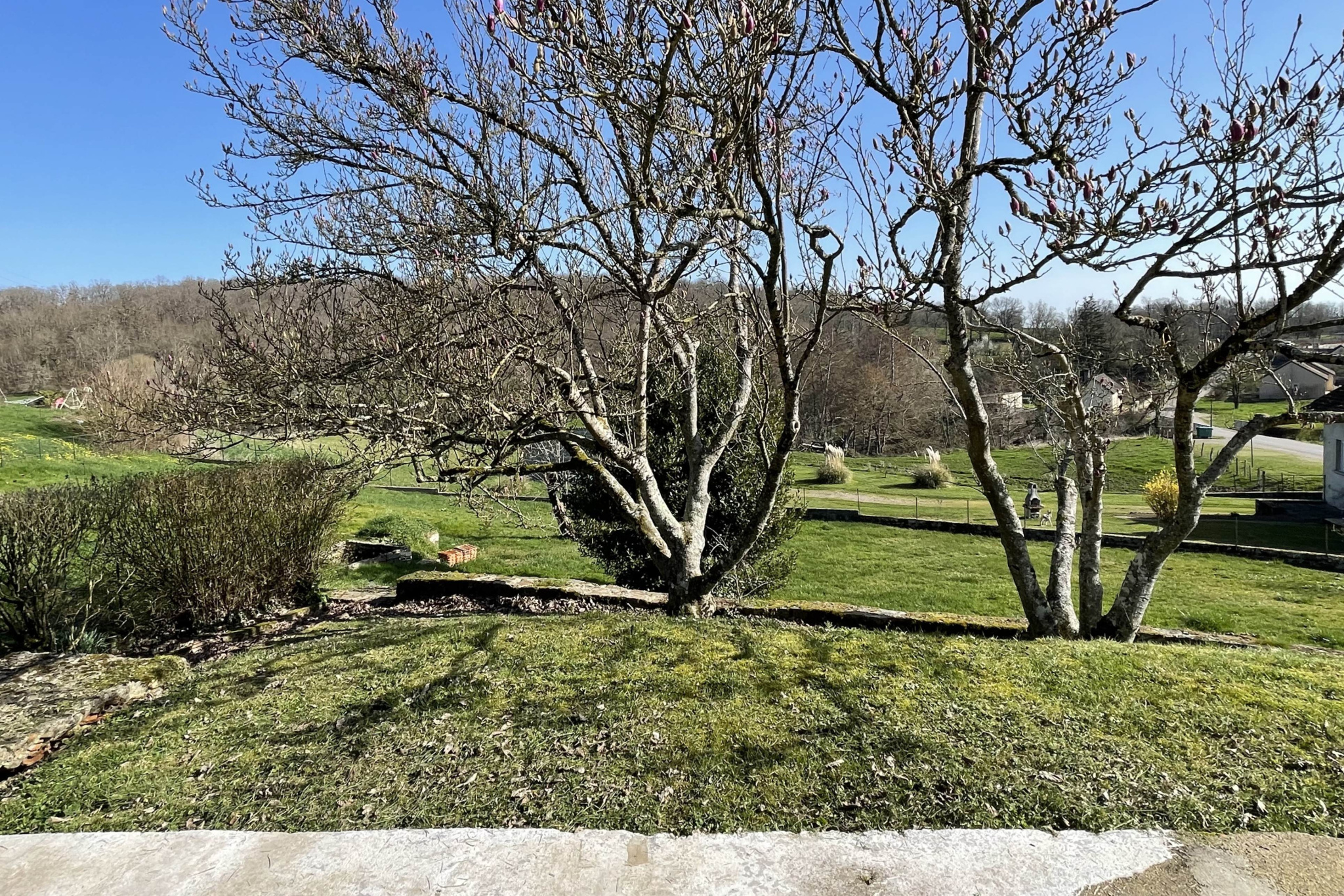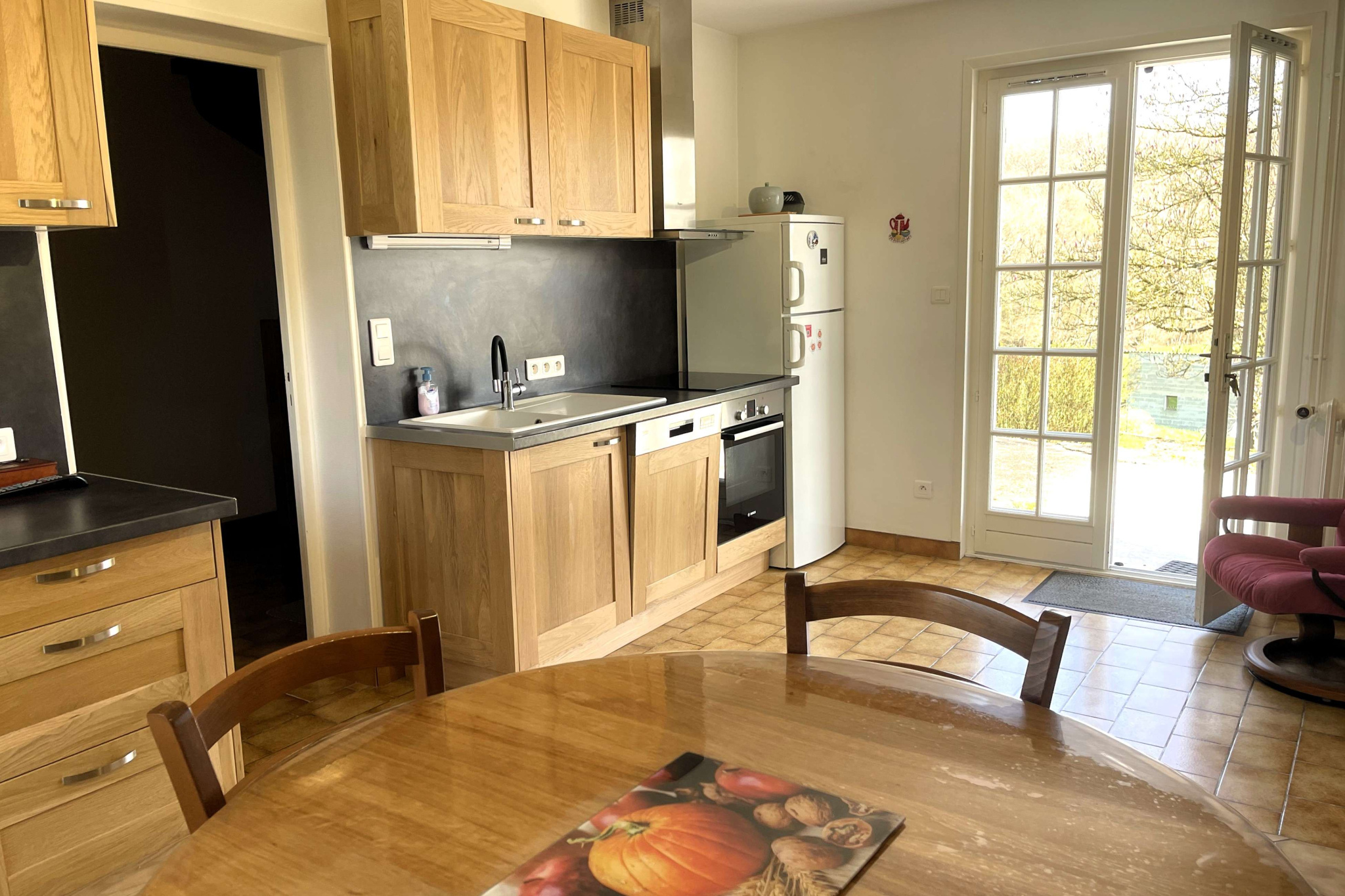 En cœur de village, cette ancienne maison propose un cadre de vie paisible et agréable profitant du calme de la campagne sans être isolée, avec le clocher en visu et une vue dégagée sur les champs et bois alentours.