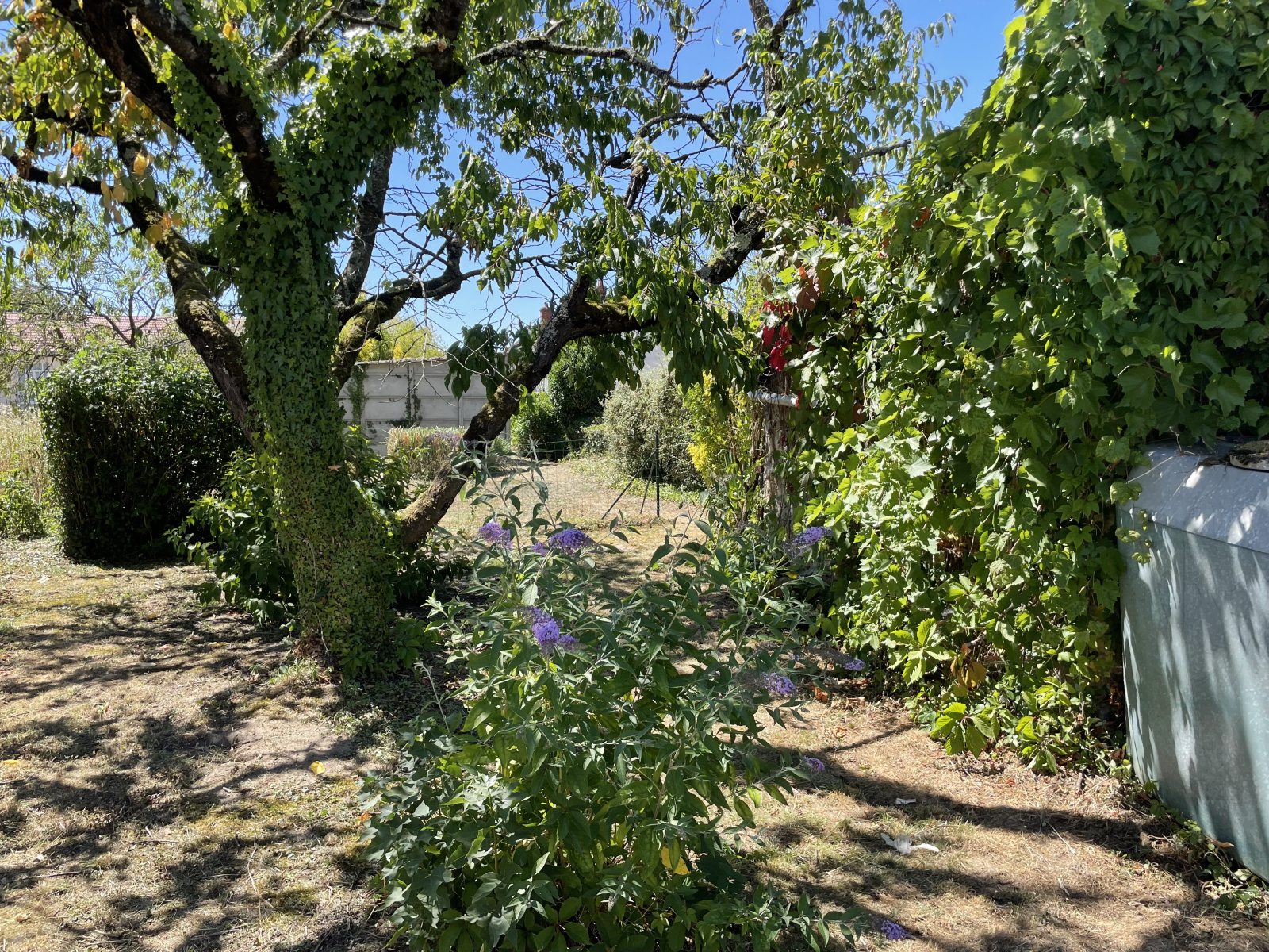 A l'exterieur, un terrain de 550m2 arboré avec un garage et deux abris.