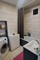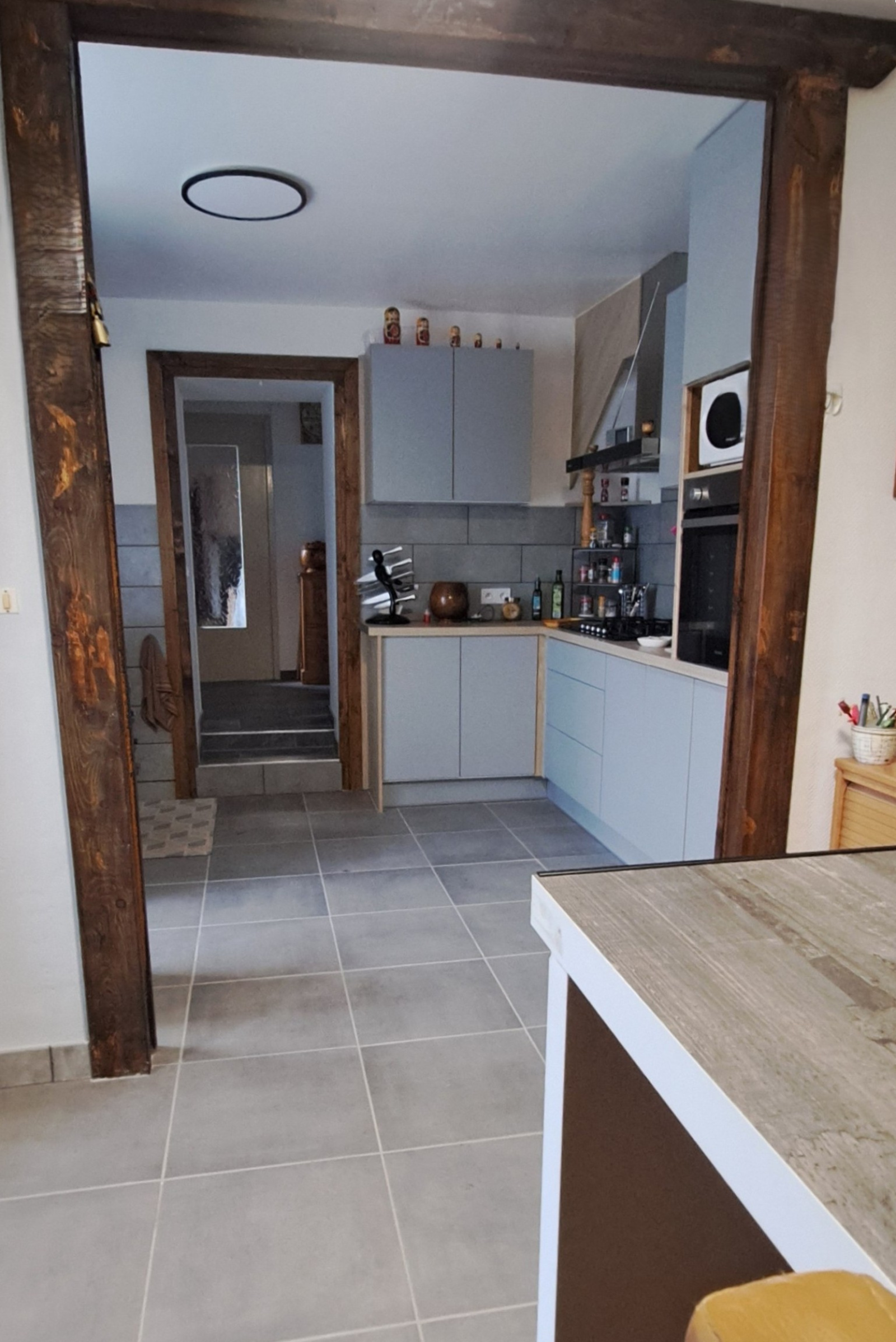 Mitoyenne sur un côté, sans aucun vis à vis, l'habitation de plain-pied rénovée tout récemment offre une surface de 82m² fonctionnelle comprenant : entrée dans cuisine contemporaine entièrement équipée, grand séjour avec accès cour, dégagement, deux chambres dont 1 à rénover entièrement, salle de bains et wc séparés. Grenier aménageable de 2 pièces au-dessus.