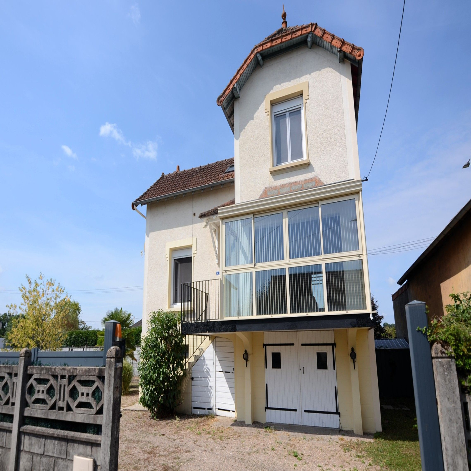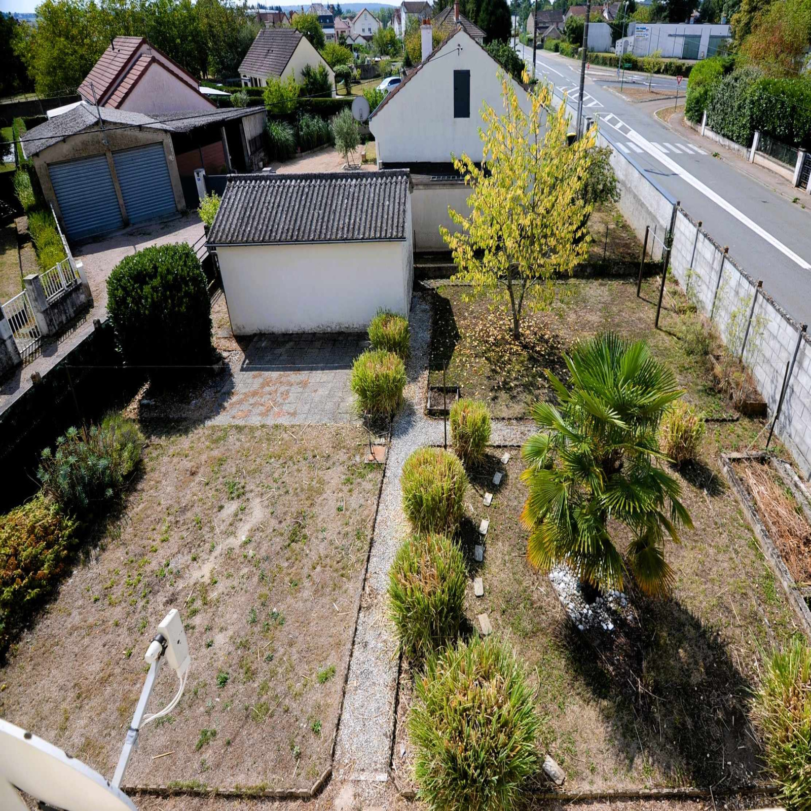 Le terrain aménagé et clos de 586m² offre un bel espace de vie sans vis-à-vis, avec cour gravillonnée, jardin arboré avec terrasse pavée et garage supplémentaire non attenant.