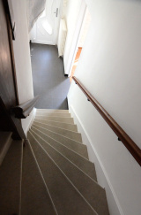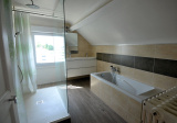 A l'étage : un palier dessert deux chambres dont 1 avec dressing, wc et salle de bains contemporaine avec grande douche te baignoire. Espace buanderie sous pente.