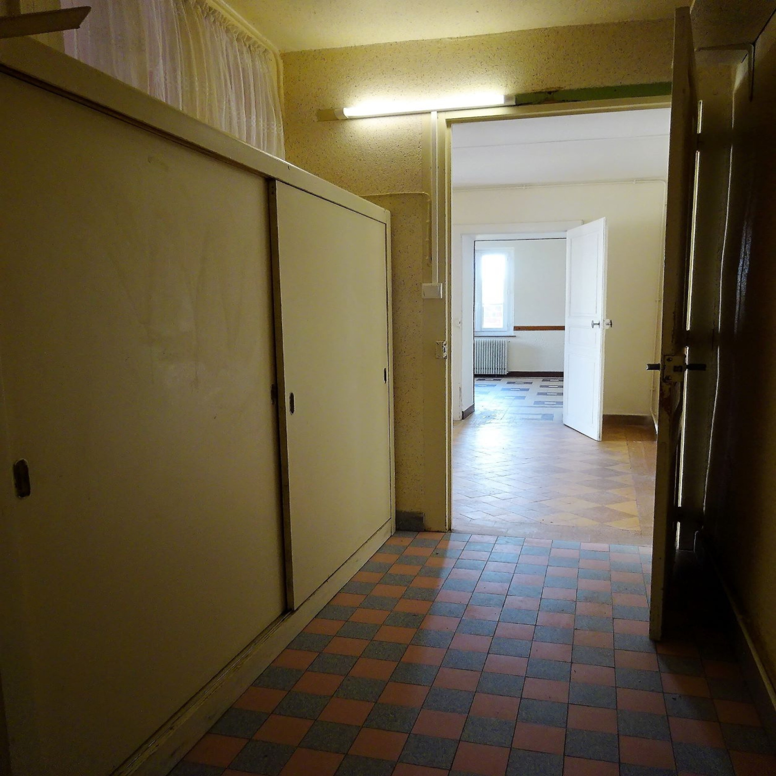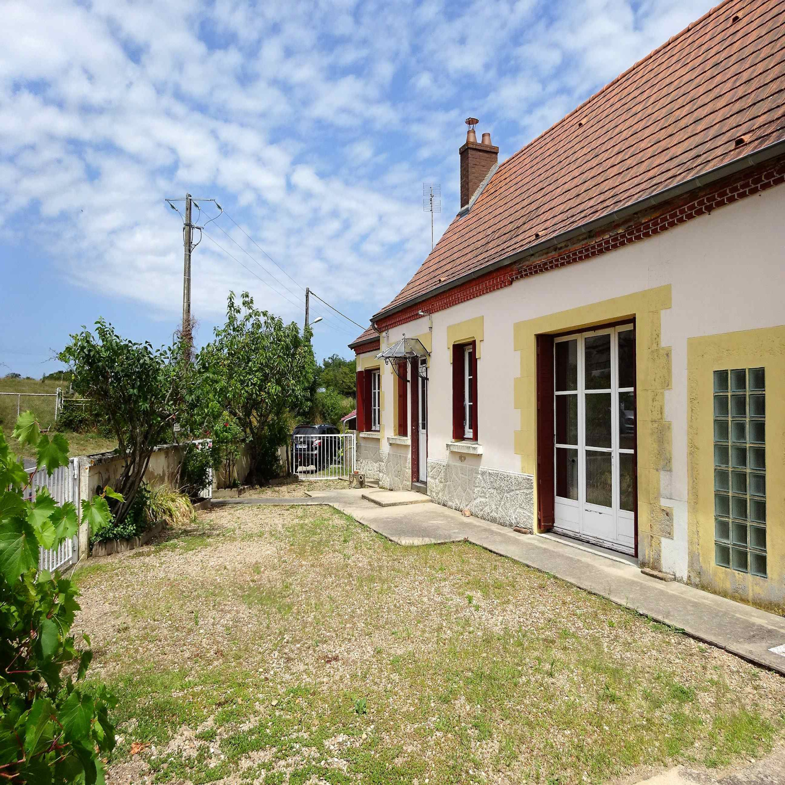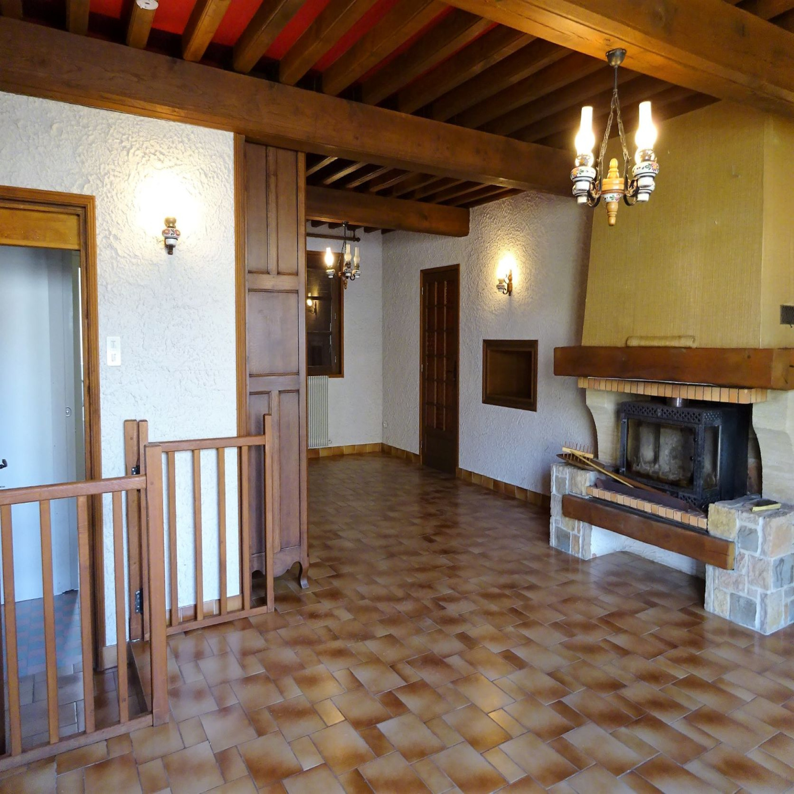 L'habitation offre un logement d'env. 110 m² de plain-pied comprenant entrée dans cuisine, séjour avec insert, deux chambres, un bureau, dégagement et salle d'eau avec wc.