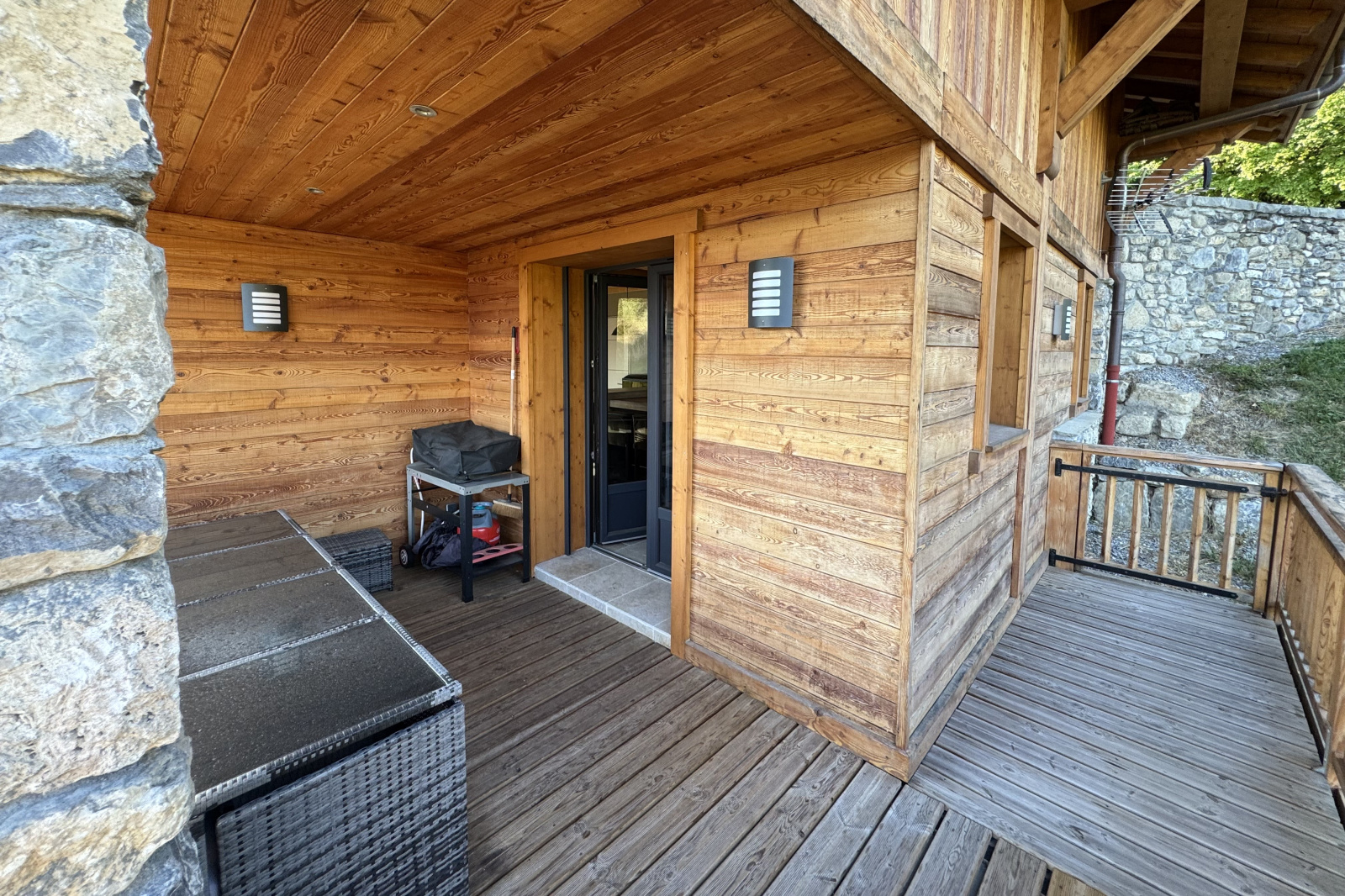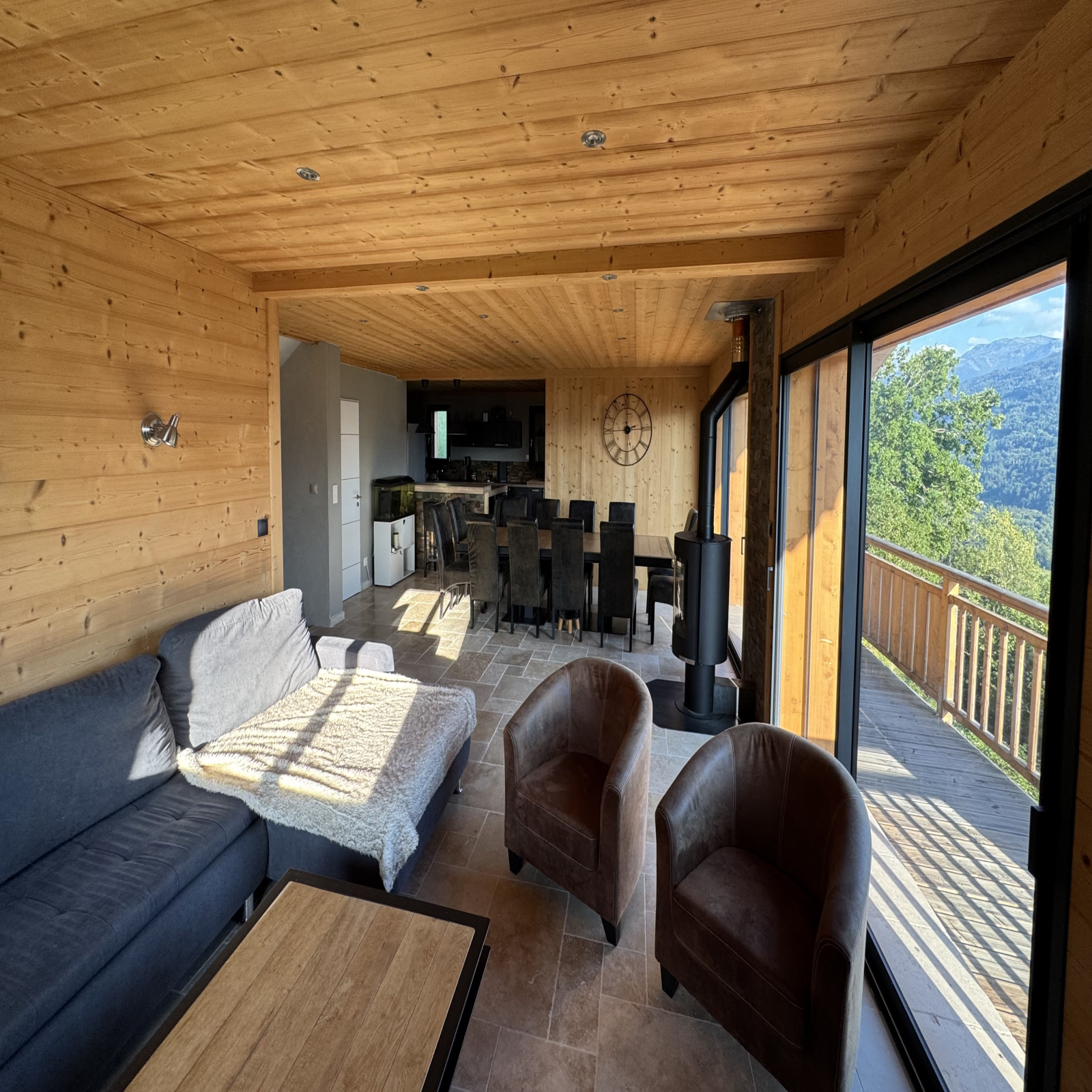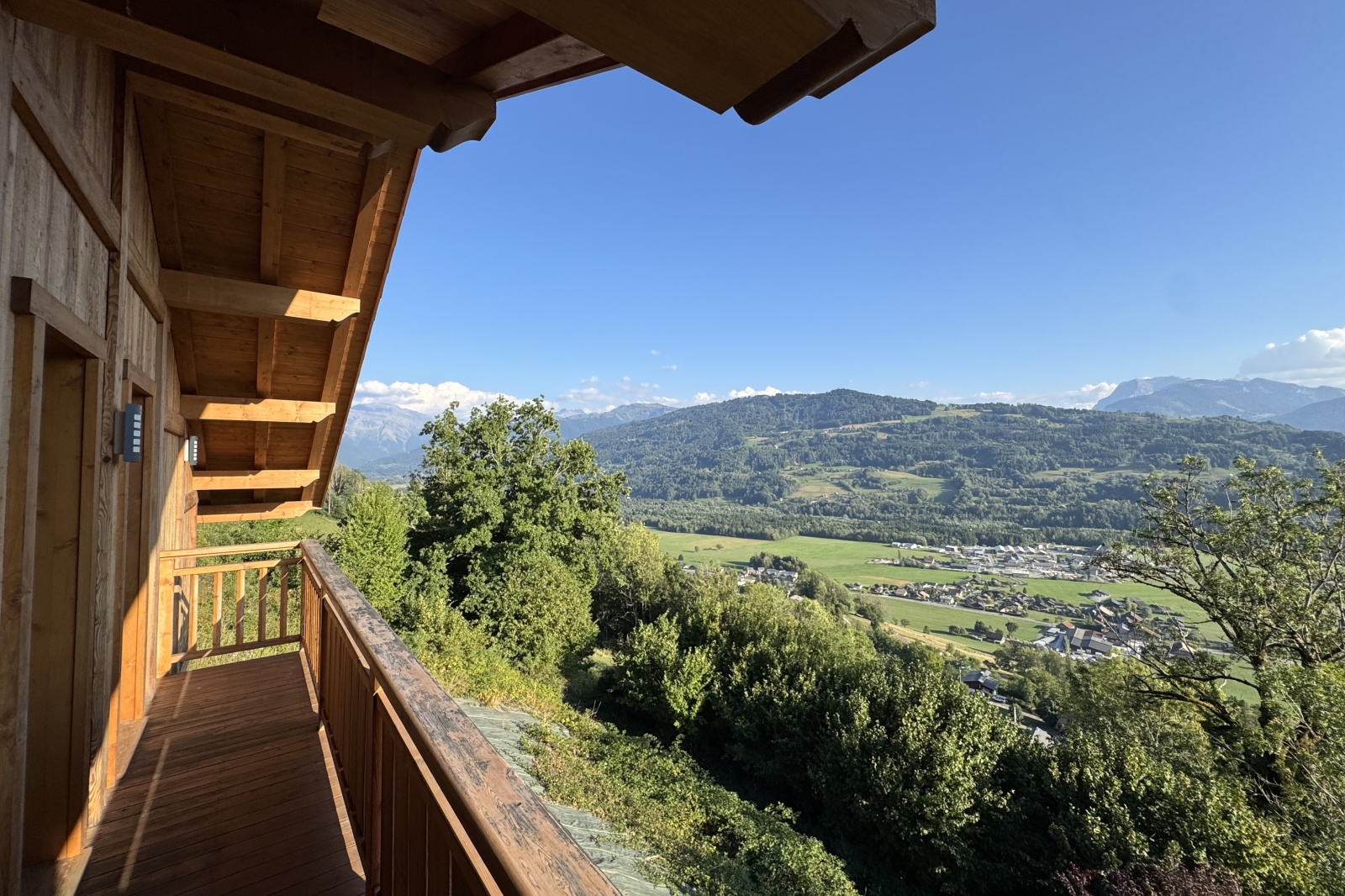 - Terrasse panoramique en bois pour profiter des couchers de soleil et des paysages montagneux.