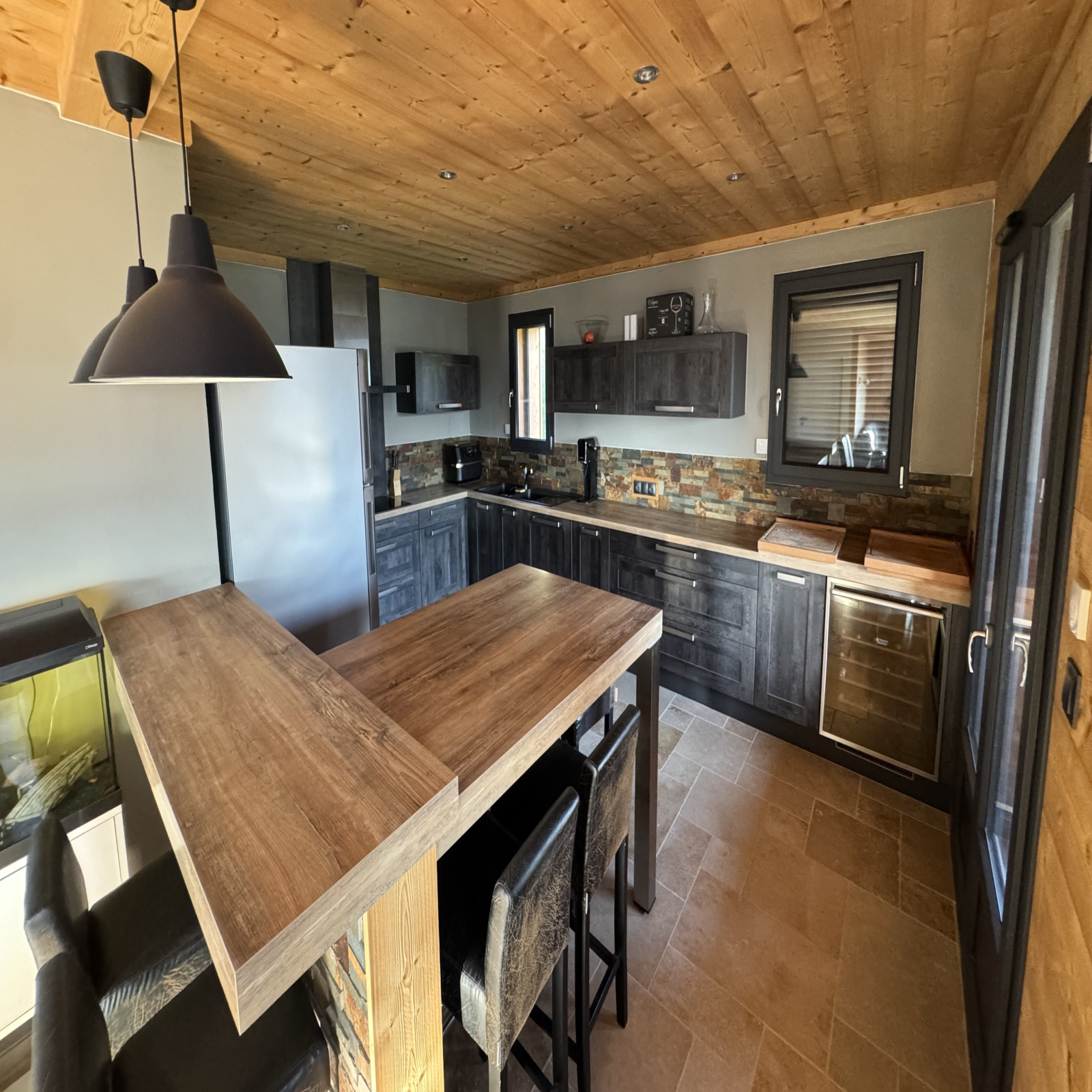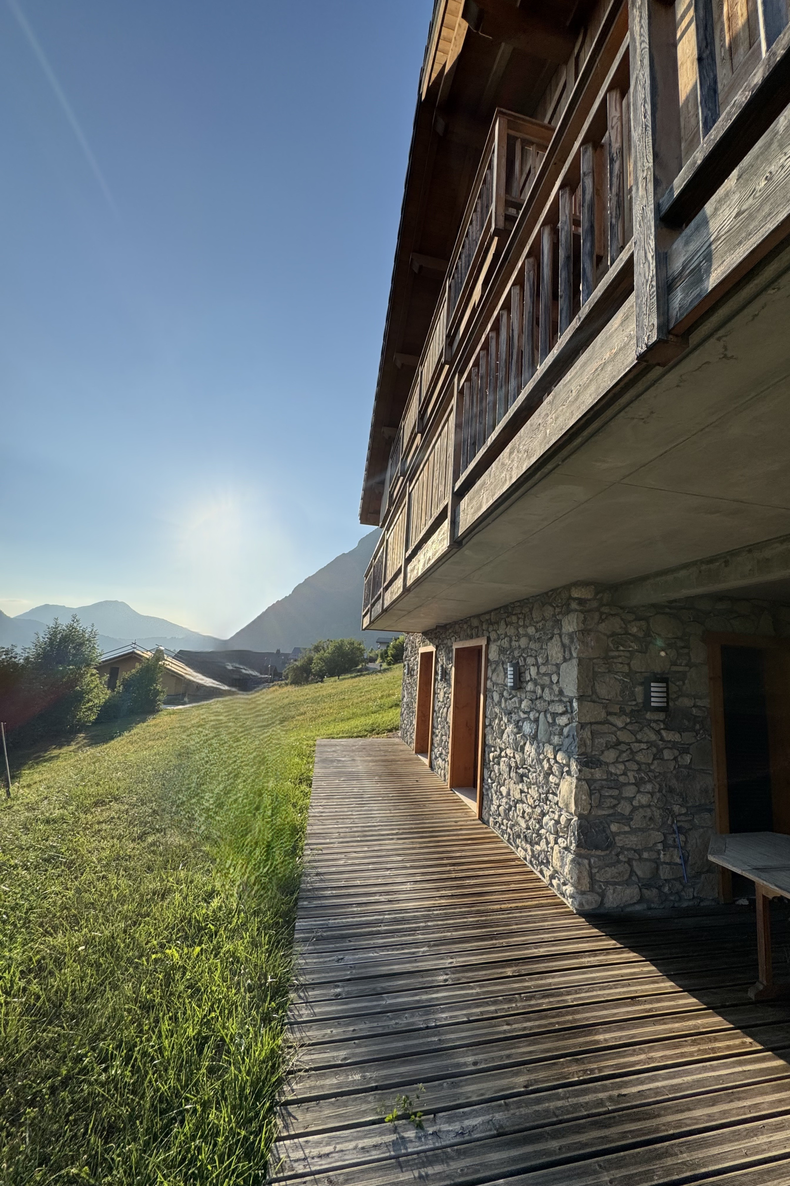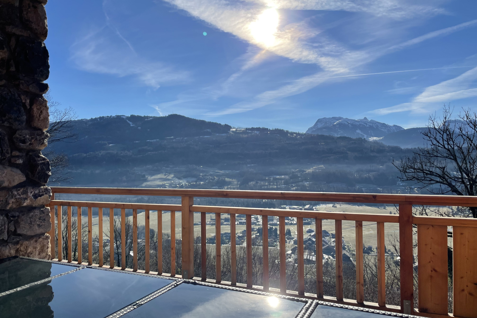 - Terrasse panoramique en bois pour profiter des couchers de soleil et des paysages montagneux.