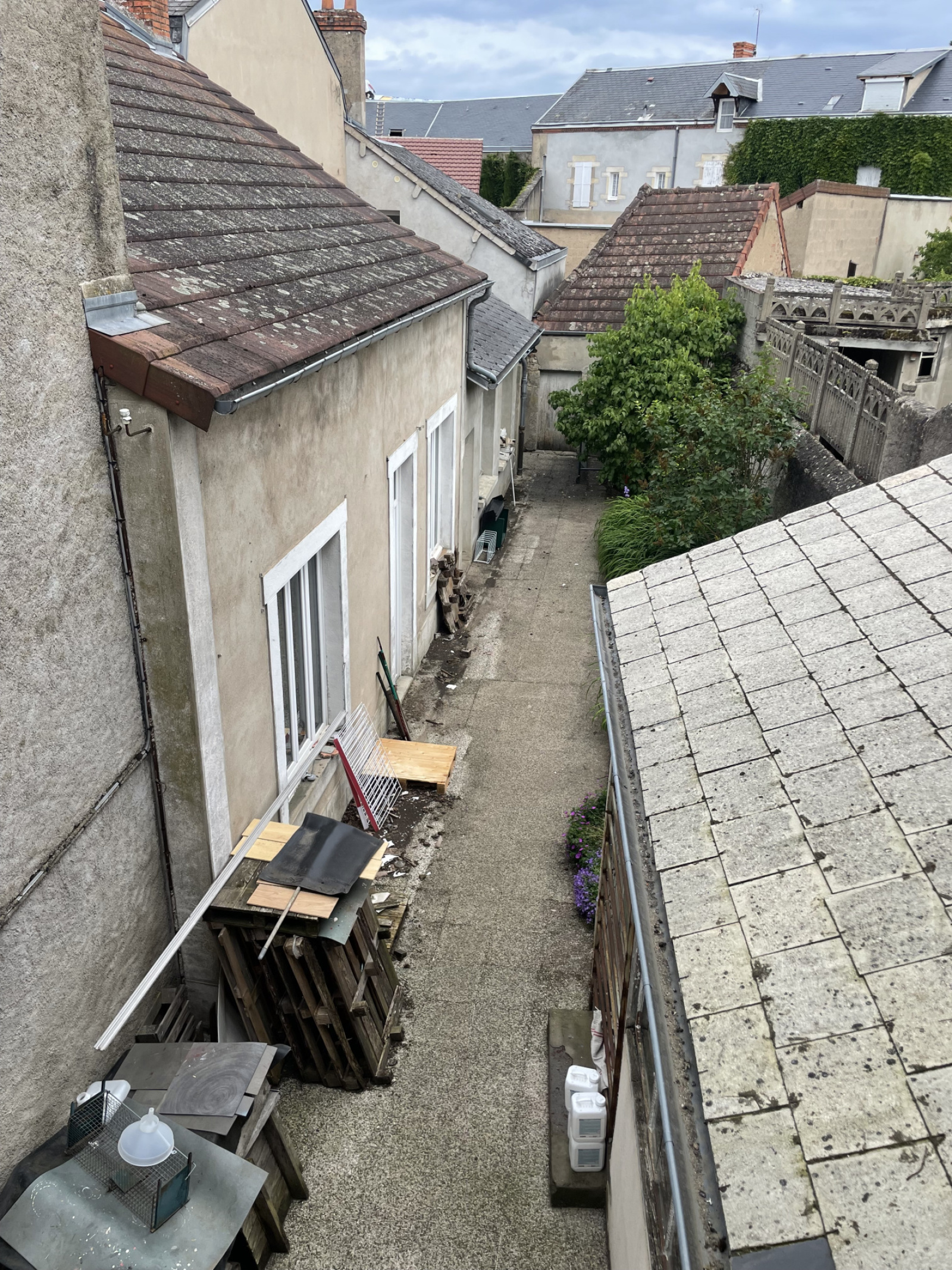 A l'étage, accès indépendant à un appartement de 67m2 comprenant une cuisine, un séjour, une chambre, une salle d'eau et des toilettes.