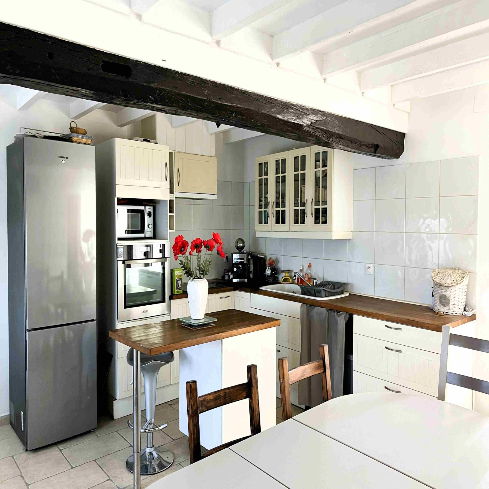 Rénovée récemment dans le respect des matériaux d'origine, l'habitation offre un logement tout confort d'env. 143m² sur 2 niveaux comprenant :