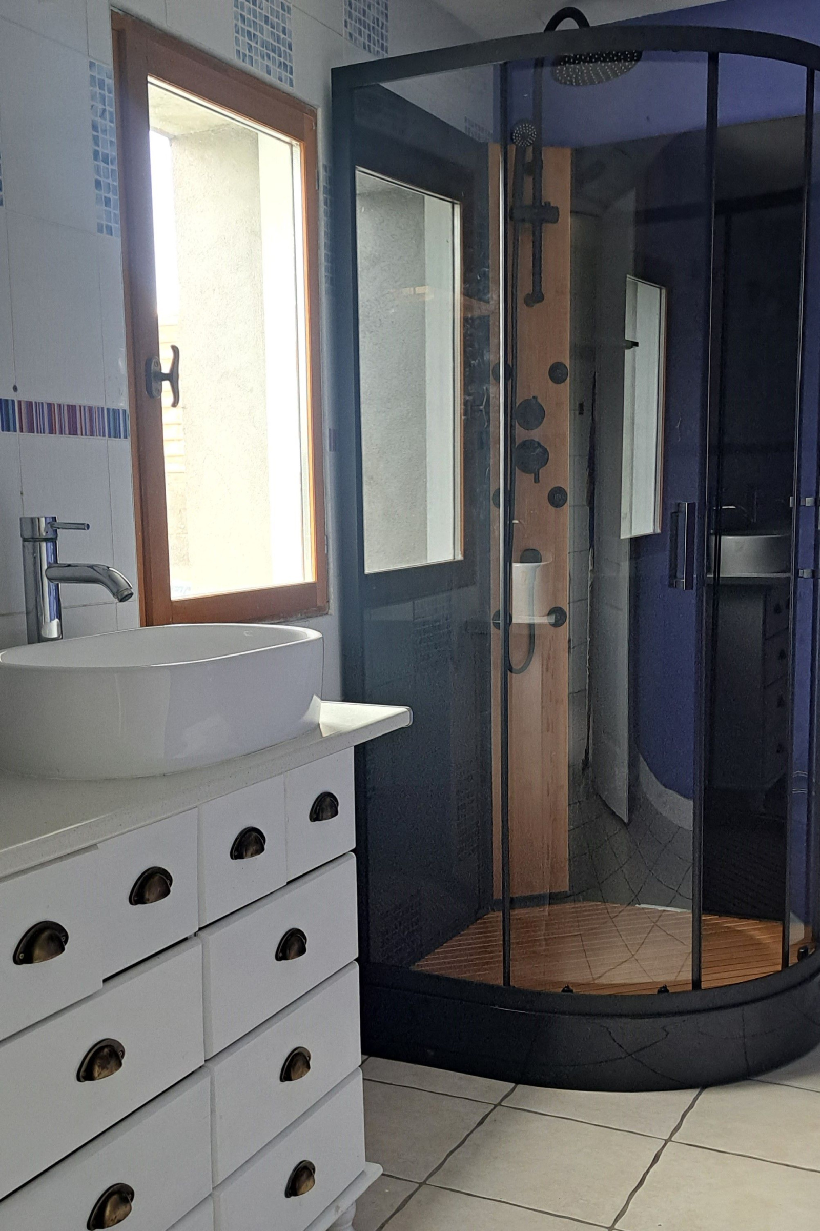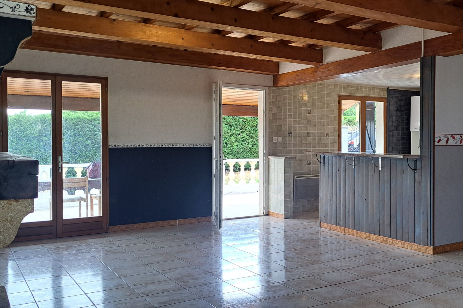 L'habitation d'env. 103m², offre un logement lumineux et fonctionnel avec une grande pièce à vivre de 50m² comprenant le séjour traversant avec cheminée insert et accès aux terrasses ouvert sur la cuisine semi-équipée.