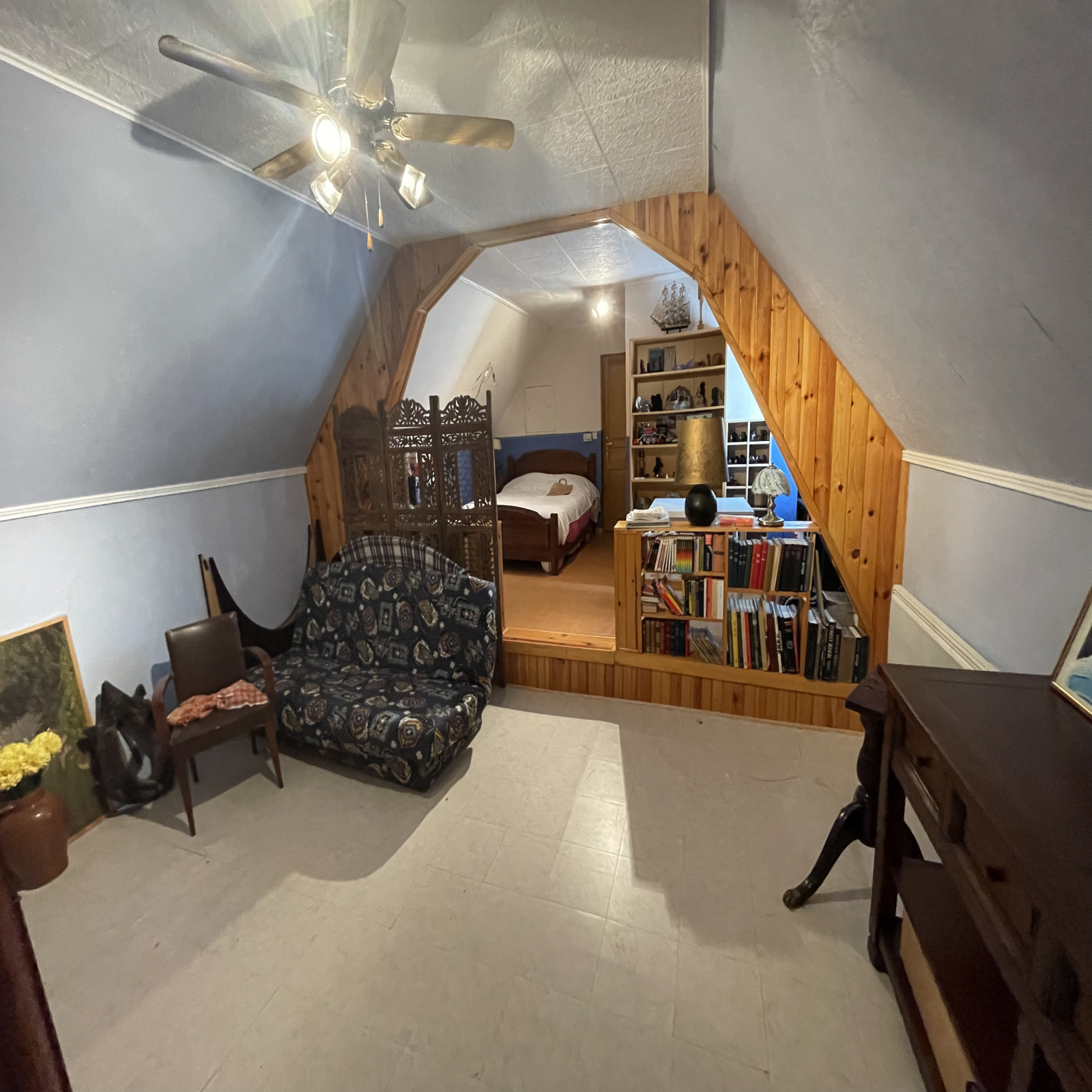 A l'étage, un espace mezzanine avec 2 belles pièces en enfilade et une chambre séparée.