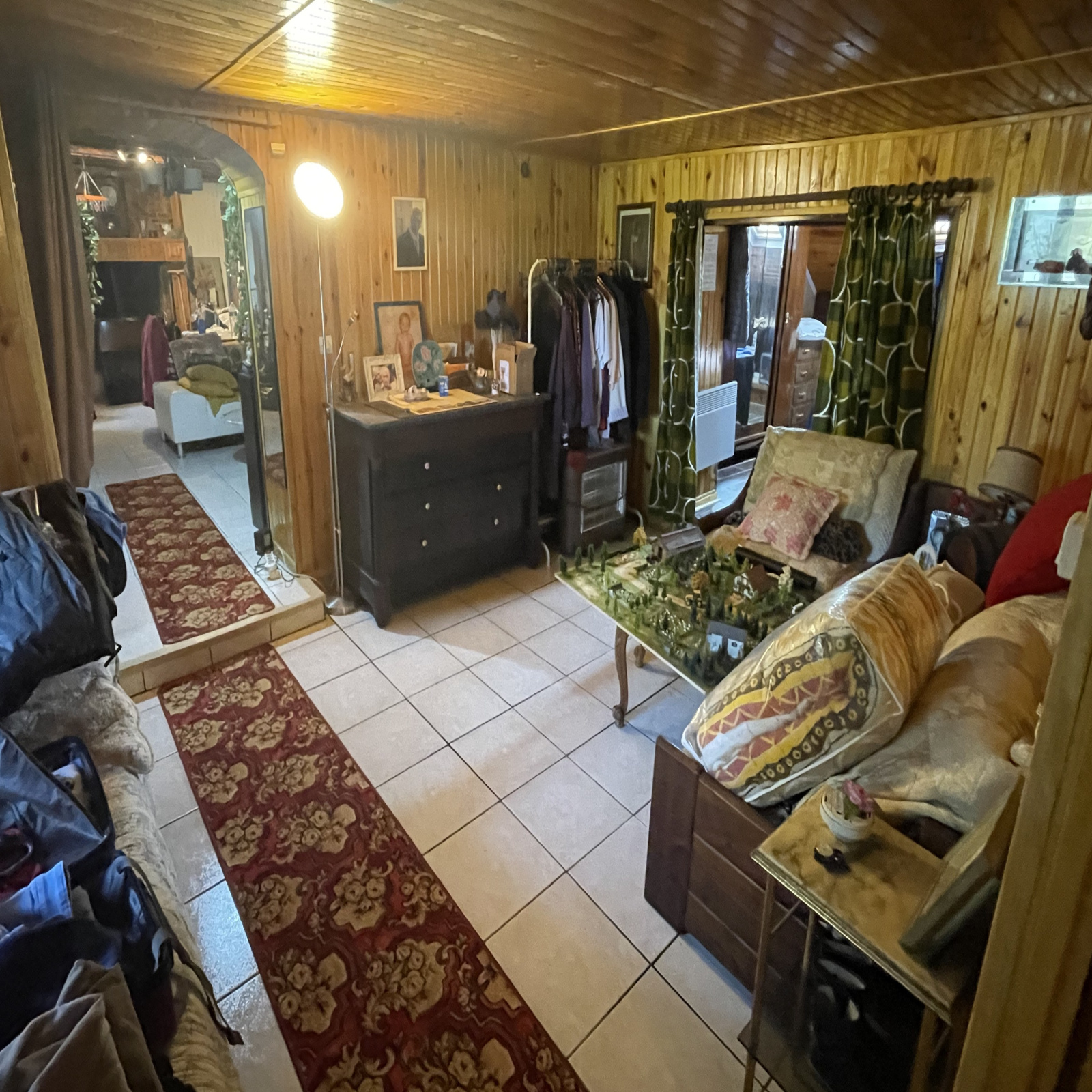 Des travaux d'extension permettent d'accéder à un salon, une chambre, un cellier et un bureau.