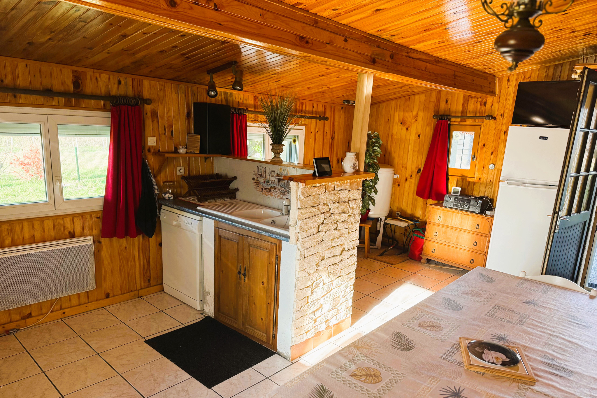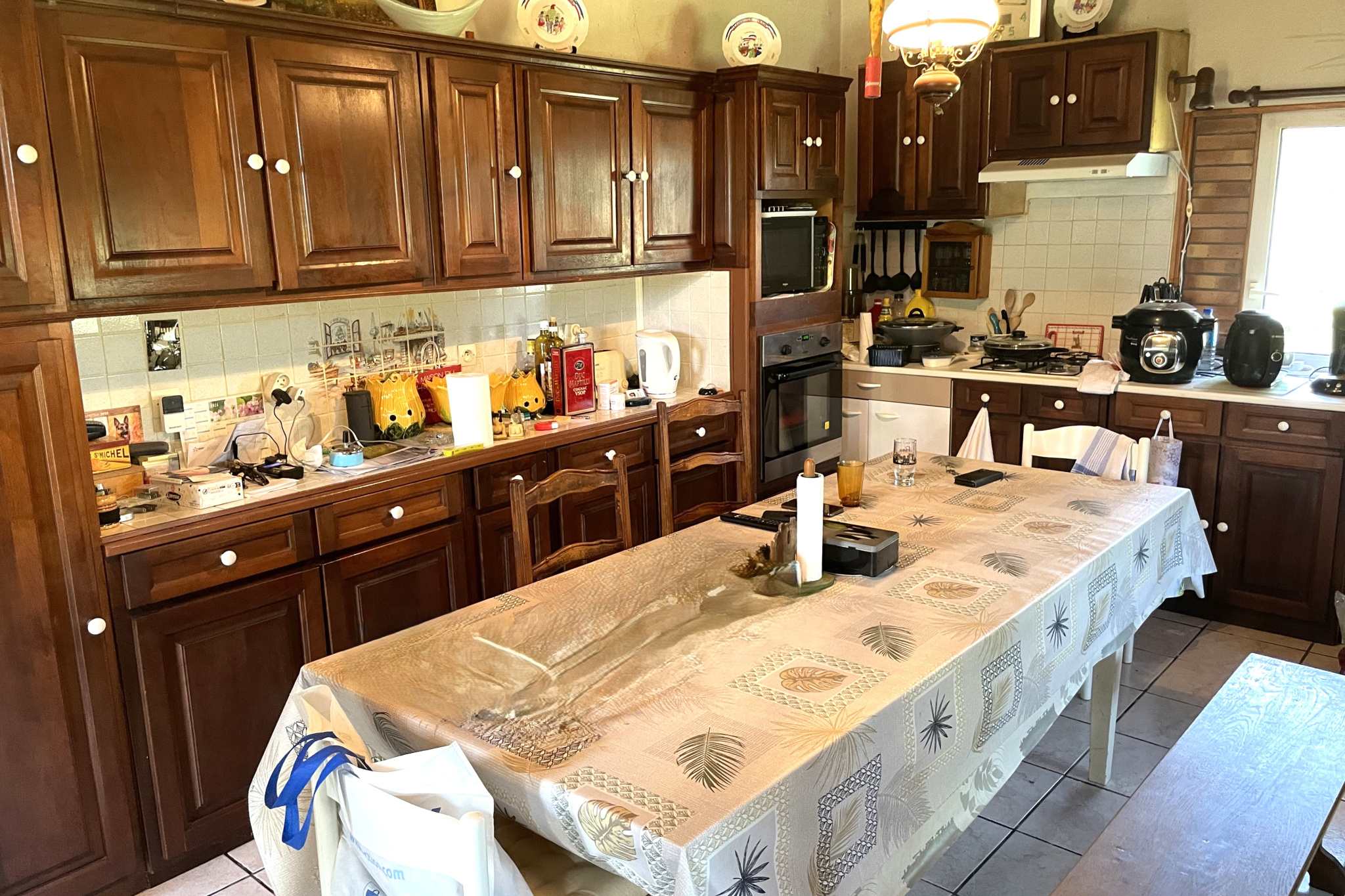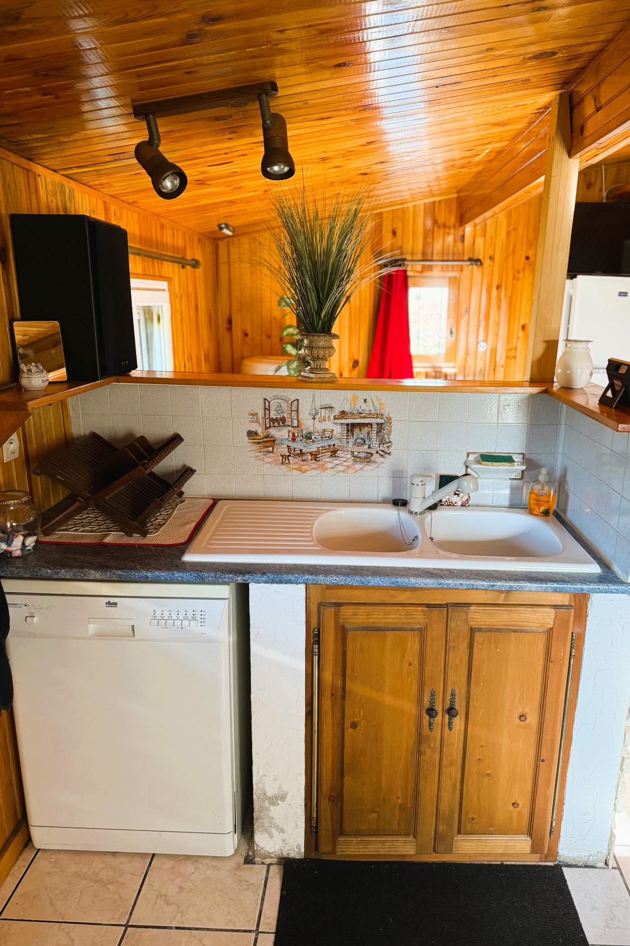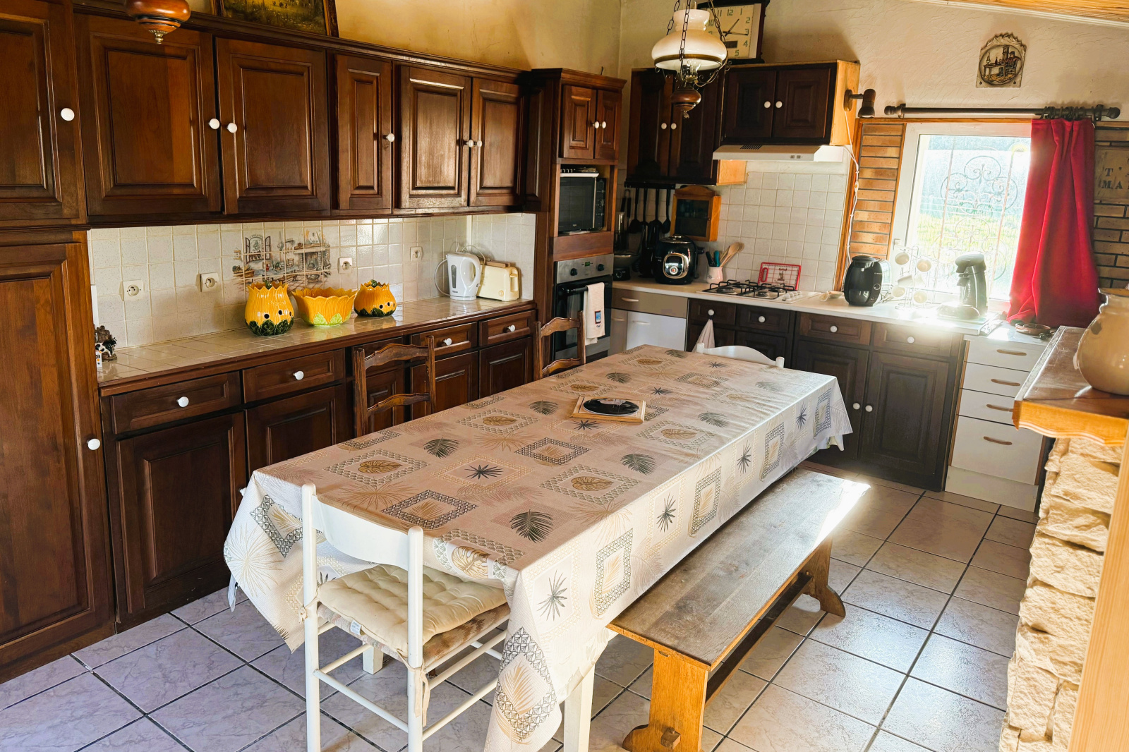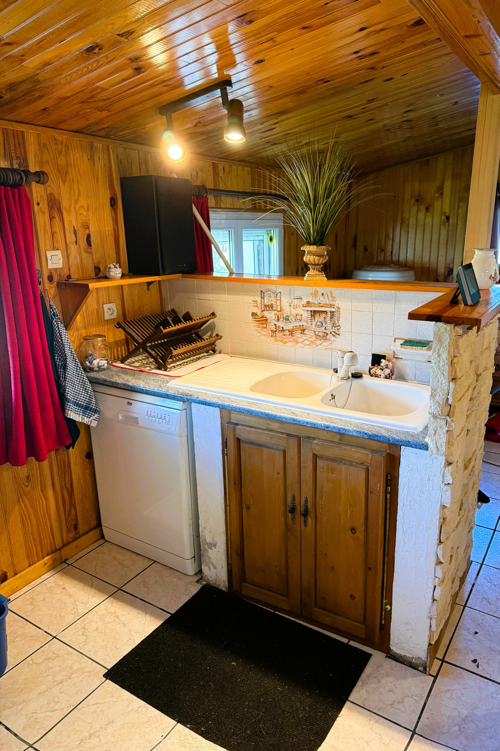 Accès de plain pied sur une cuisine équipée qui compose le rez-de-chaussée avec un séjour, une buanderie, un Wc indépendant, et une salle d'eau avec cabine de douche et WC.